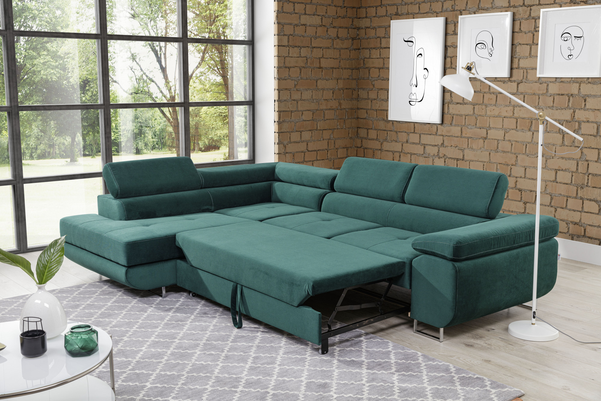 Rohová sedacia súprava ATOS je vyrobená z kvalitných materiálov.Konštrukcia pohovky je vyrobená z kombinácie dreva a drevotriesky. Sedacia časť je vyrobená z kombinácie polyuretánovej peny T3040+T2542 a vlnitých pružín. Na podopretie pohovky sa používa polyuretánová pena T2542/T3040.Sedacia súprava je rozkladacia pomocou rozkladacieho typu Dolphin. Pohovka má priestranný úložný priestor na uloženie posteľnej bielizne.