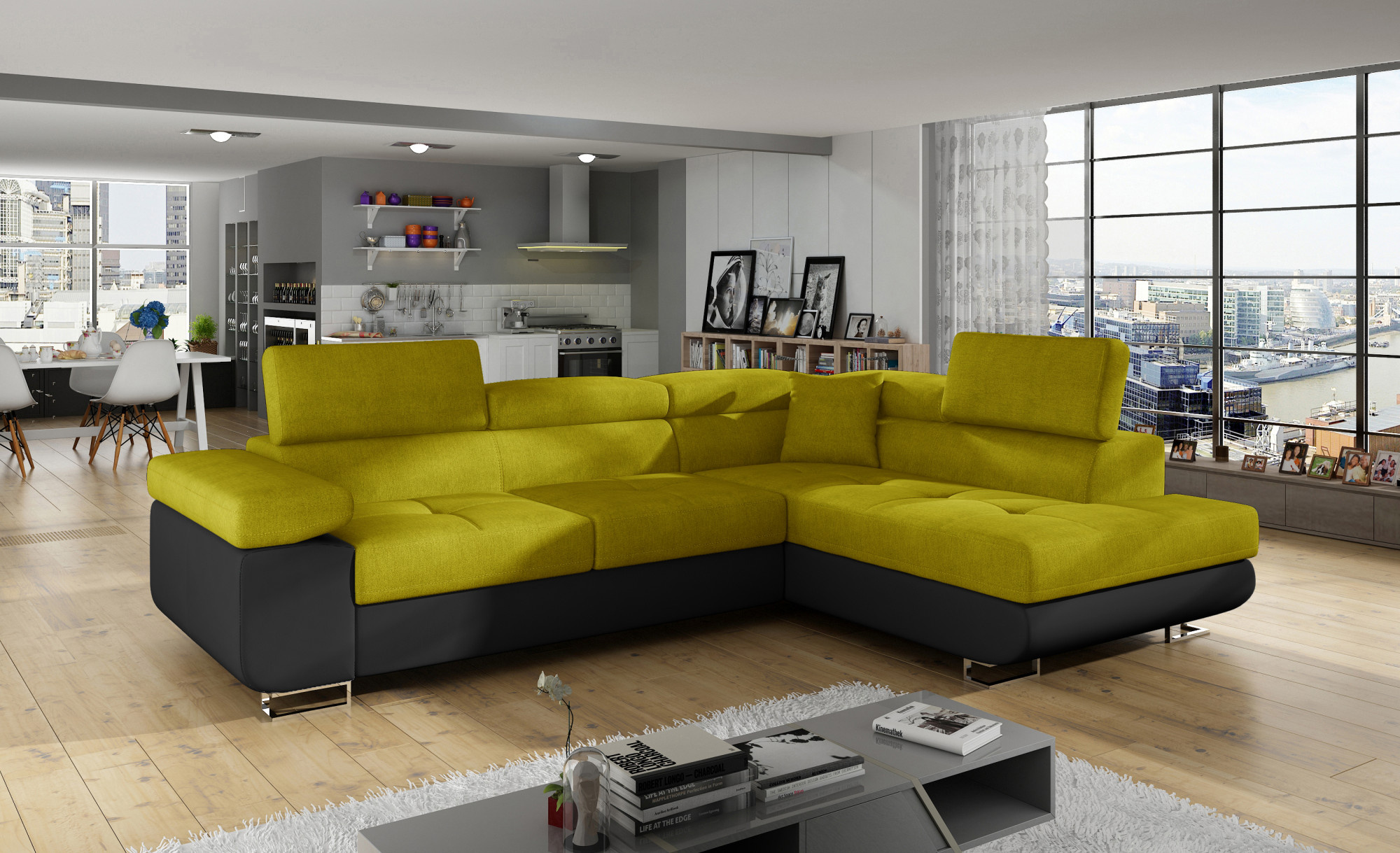 Rohová sedacia súprava ATOS je vyrobená z kvalitných materiálov.Konštrukcia pohovky je vyrobená z kombinácie dreva a drevotriesky. Sedacia časť je vyrobená z kombinácie polyuretánovej peny T3040+T2542 a vlnitých pružín. Na podopretie pohovky sa používa polyuretánová pena T2542/T3040.Sedacia súprava je rozkladacia pomocou rozkladacieho typu Dolphin. Pohovka má priestranný úložný priestor na uloženie posteľnej bielizne.
