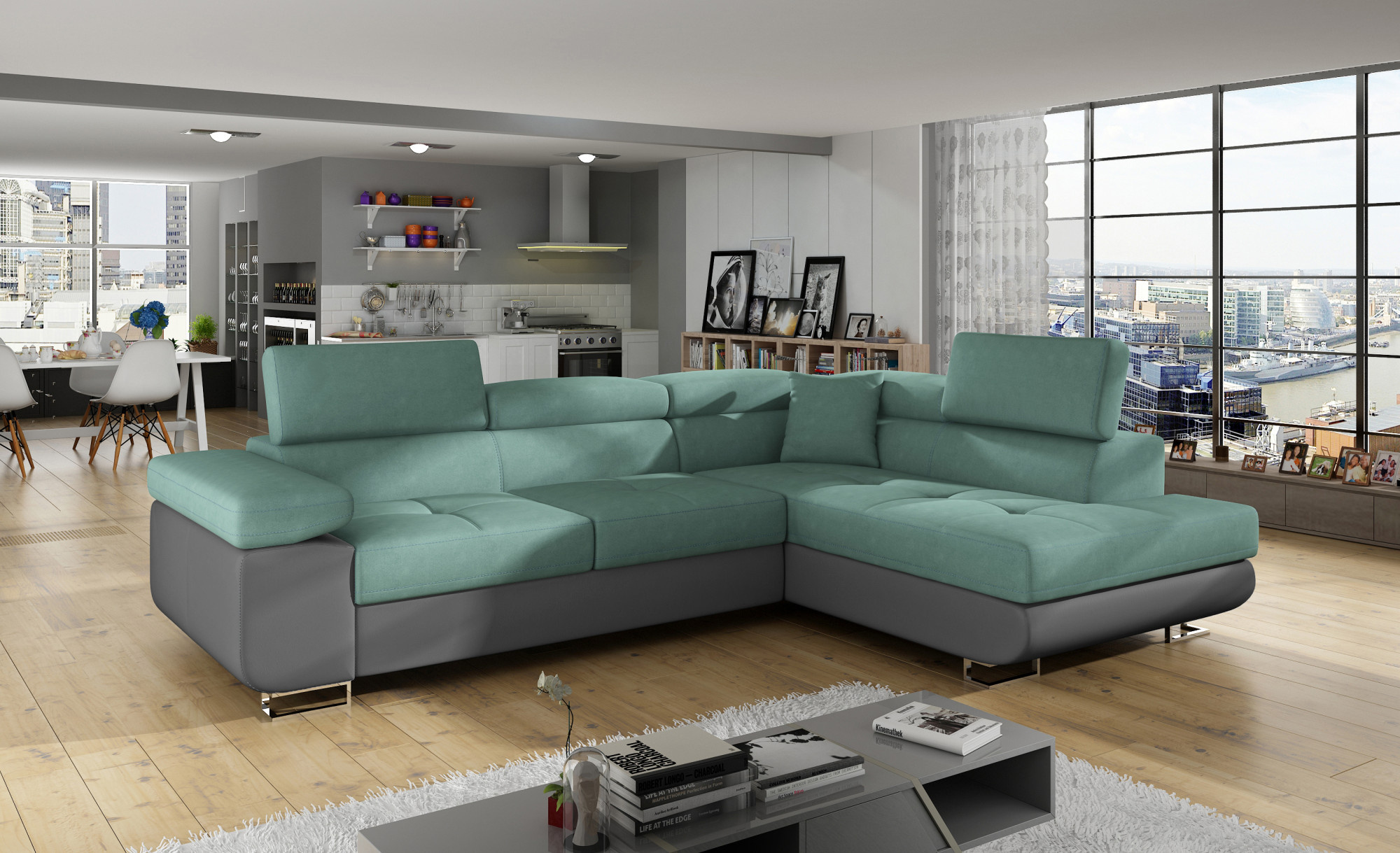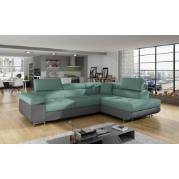 Rohová sedacia súprava ATOS je vyrobená z kvalitných materiálov.Konštrukcia pohovky je vyrobená z kombinácie dreva a drevotriesky. Sedacia časť je vyrobená z kombinácie polyuretánovej peny T3040+T2542 a vlnitých pružín. Na podopretie pohovky sa používa polyuretánová pena T2542/T3040.Sedacia súprava je rozkladacia pomocou rozkladacieho typu Dolphin. Pohovka má priestranný úložný priestor na uloženie posteľnej bielizne.