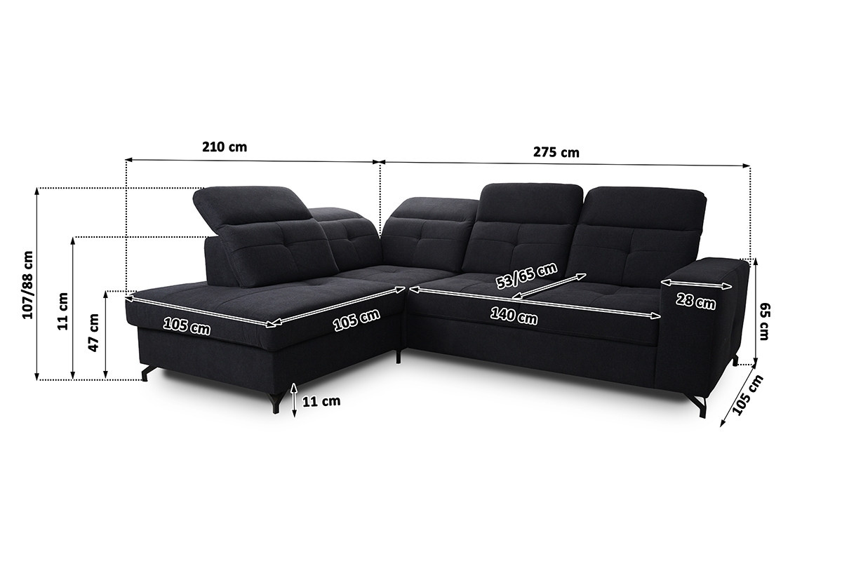 Rohová sedacia súprava Belavio L, šírka: 275, výška: 88/107, hĺbka: 210, plocha na spanie: 195x130, montáž. rohová pohovka Belavio L