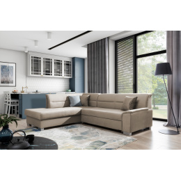 Rohová sedacia súprava Bergen je vyrobená z kvalitných materiálov.Konštrukcia pohovky je vyrobená z kombinácie dreva a drevotriesky. Sedacia časť je vyrobená v kombinácii polyuretánovej peny T3040 a pružín. Pohovka je skladacia pomocou skladacieho stroja. Pohovka má priestranný úložný priestor na uloženie posteľnej bielizne.