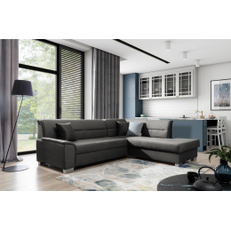 Rohová sedacia súprava Bergen je vyrobená z kvalitných materiálov.Konštrukcia pohovky je vyrobená z kombinácie dreva a drevotriesky. Sedacia časť je vyrobená v kombinácii polyuretánovej peny T3040 a pružín. Pohovka je skladacia pomocou skladacieho stroja. Pohovka má priestranný úložný priestor na uloženie posteľnej bielizne.