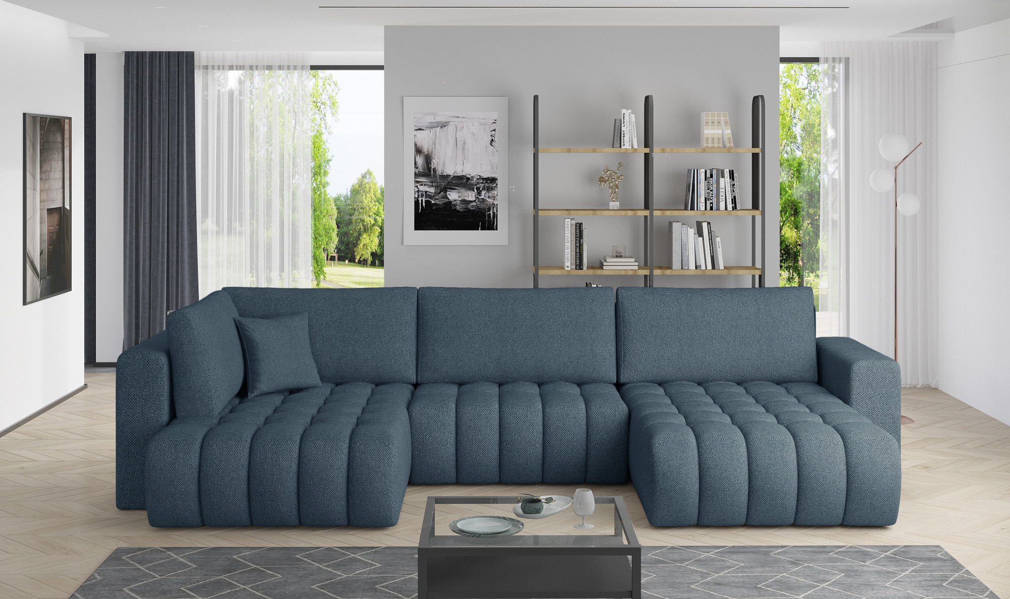 Rohová sedacia súprava Bonito je vyrobená z kvalitných materiálov.Konštrukcia pohovky je vyrobená z kombinácie dreva a drevotriesky. Sedacia časť je vyrobená v kombinácii polyuretánovej peny T2540 + pamäťovej peny HR a vlnitých pružín Falista typu B. Sedacia súprava je rozkladacia pomocou rozkladacieho mechanizmu DL. Pohovka má priestranný úložný priestor na uloženie posteľnej bielizne.