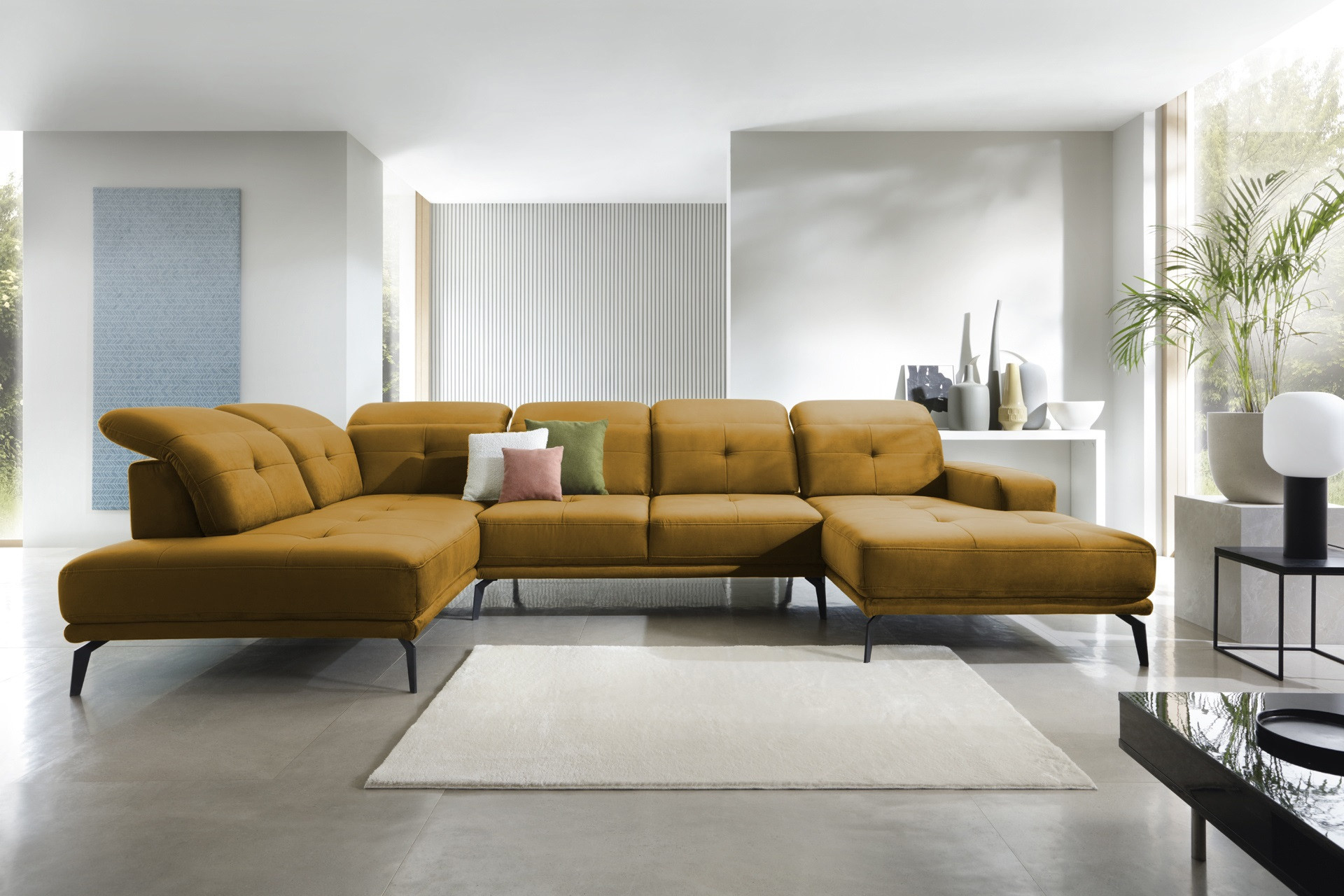 - pohovku možno prispôsobiť priestoru - zadná časť pohovky je čalúnená rovnakou poťahovou látkou