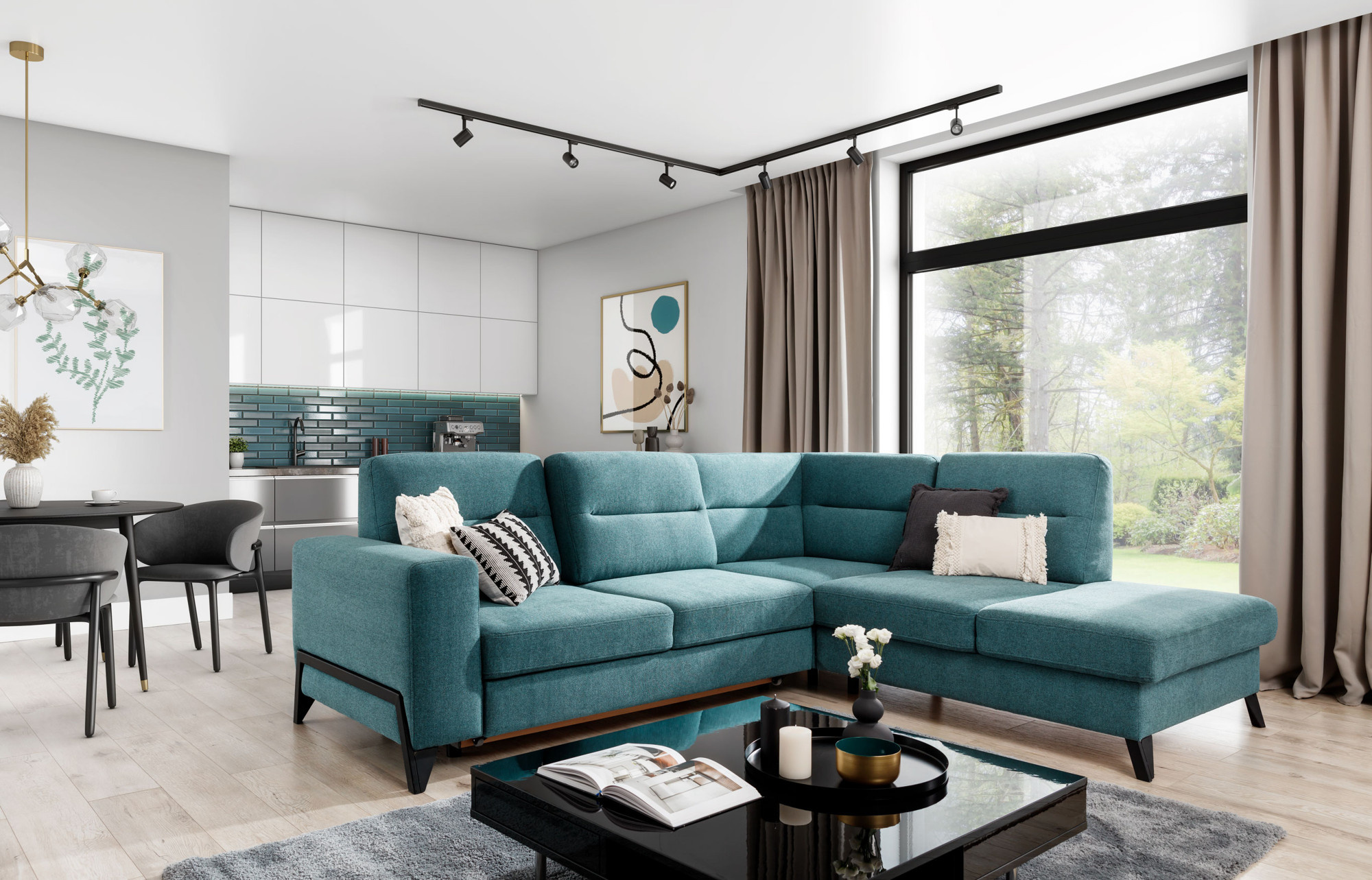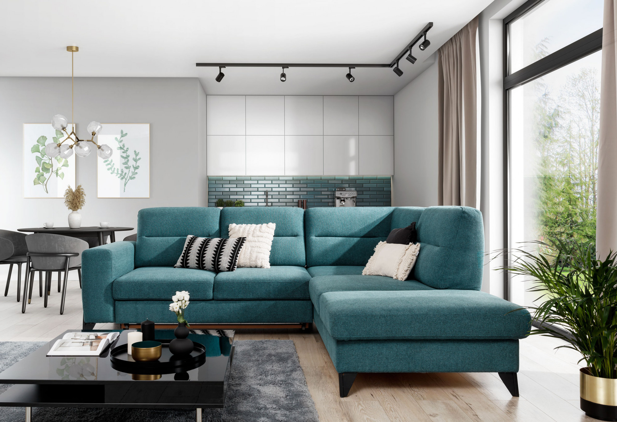 - možnosť nastavenia sedacej súpravy do priestoru - zadná časť sedacej súpravy je čalúnená rovnakou poťahovou látkou