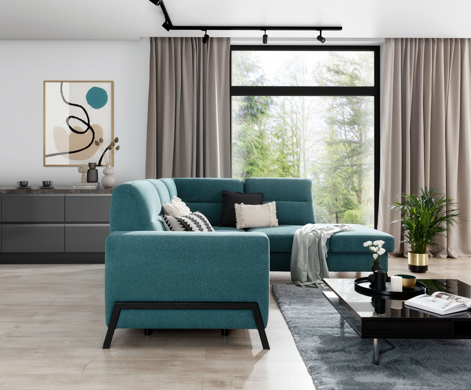 - možnosť nastavenia sedacej súpravy do priestoru - zadná časť sedacej súpravy je čalúnená rovnakou poťahovou látkou