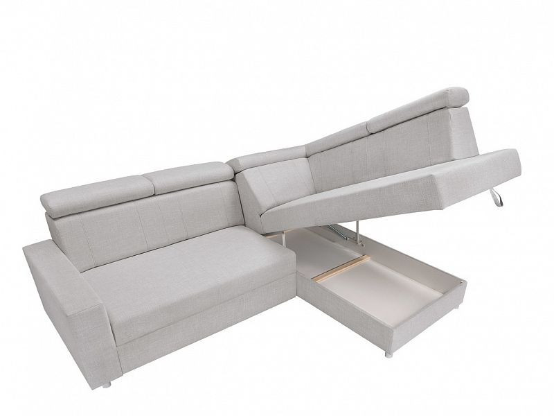 Táto pohovka je rozkladacia a má veľký úložný priestor. Vychutnajte si pohodlie a relaxáciu vďaka nastaviteľným opierkam hlavy. Skladací mechanizmus vozíka je vybavený gumovými kolieskami, ktoré chránia podlahu pred poškodením. Po rozložení má plocha na spanie rozmery 149 x 195 cm.