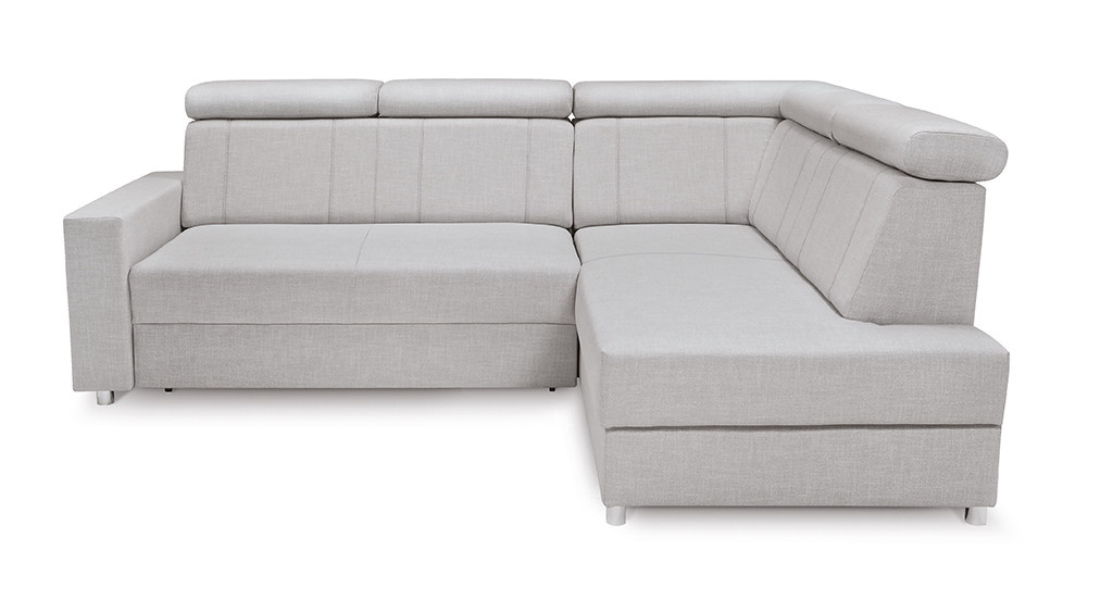 Krásna a praktická je rohová sedacia súprava Lone v svetlosivej farbe. Jeho rohový dizajn je na ľavej strane(v sede).