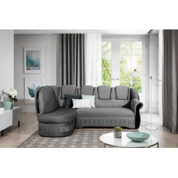 Rohová sedacia súprava LORD je vyrobená z kvalitných materiálov.Konštrukcia pohovky je vyrobená z kombinácie dreva a drevotriesky. Sedacia časť je vyrobená z kombinácie polyuretánovej peny T3040 a vlnitých pružín. Na podopretie pohovky sa používa polyuretánová pena T2542.Sedacia súprava je rozkladacia pomocou rozkladacieho typu Dolphin. Pohovka má priestranný úložný priestor na uloženie posteľnej bielizne.
