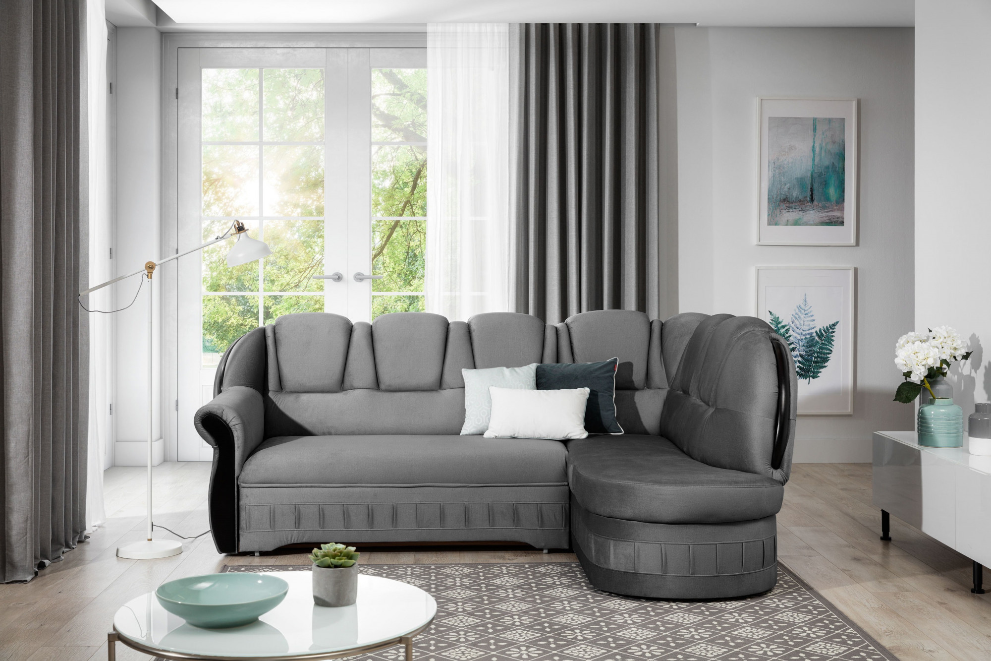 Rohová sedacia súprava LORD je vyrobená z kvalitných materiálov.Konštrukcia pohovky je vyrobená z kombinácie dreva a drevotriesky. Sedacia časť je vyrobená z kombinácie polyuretánovej peny T3040 a vlnitých pružín. Na podopretie pohovky sa používa polyuretánová pena T2542.Sedacia súprava je rozkladacia pomocou rozkladacieho typu Dolphin. Pohovka má priestranný úložný priestor na uloženie posteľnej bielizne.
