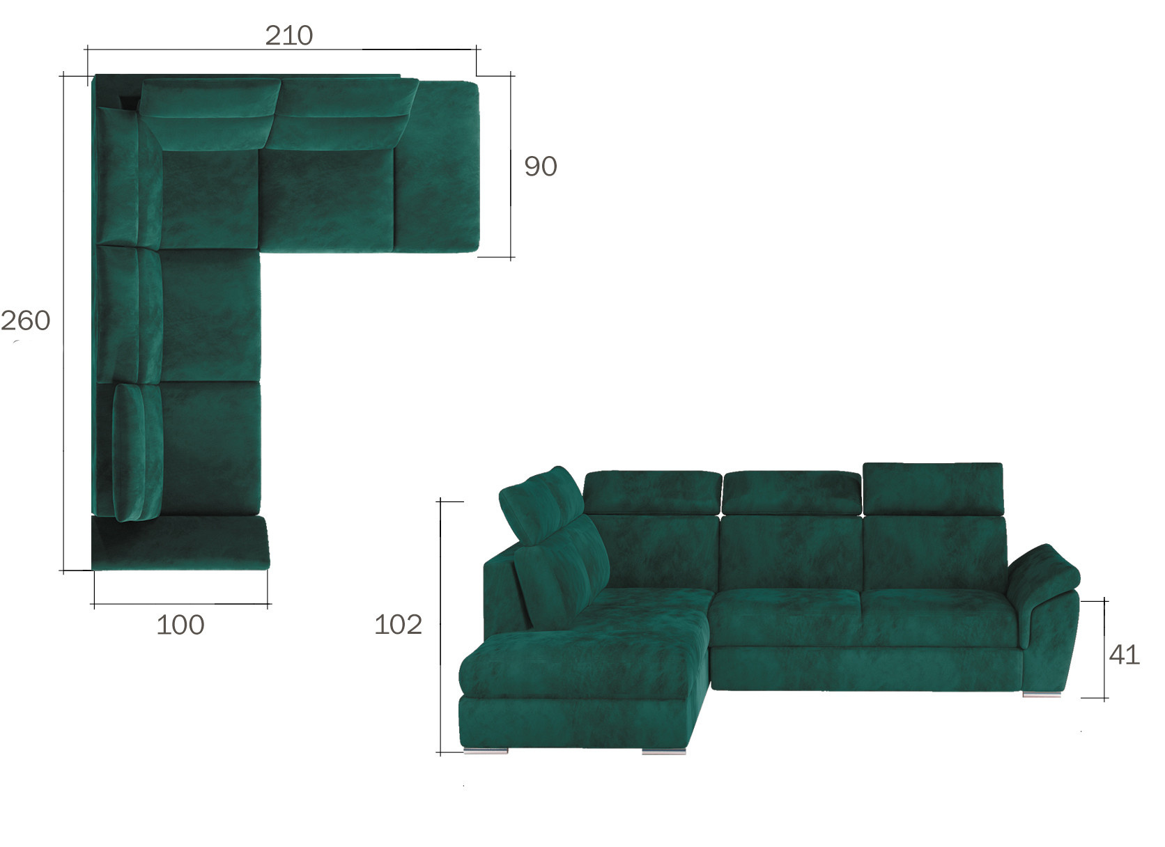 Rohová sedacia súprava Loreto je vyrobená z kvalitných materiálov.Konštrukcia pohovky je vyrobená z kombinácie dreva a drevotriesky. Sedacia časť je vyrobená z kombinácie polyuretánovej peny T30 a kostí. Na podopretie pohovky sa používa polyuretánová pena T2542.Sedacia súprava je rozkladacia pomocou rozkladacieho typu Dolphin. Pohovka má priestranný úložný priestor na uloženie posteľnej bielizne.
