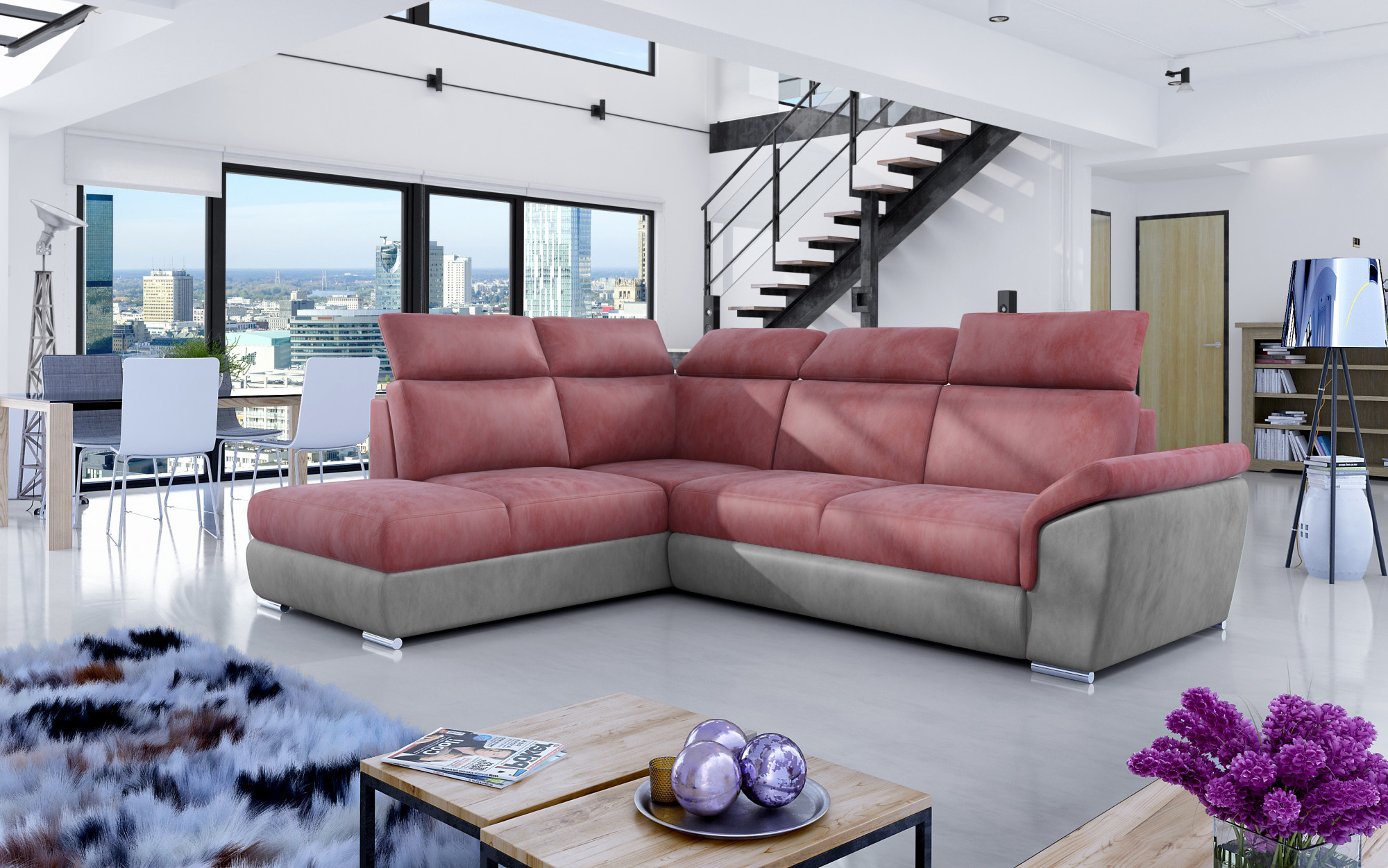 Rohová sedacia súprava Loreto je vyrobená z kvalitných materiálov.Konštrukcia pohovky je vyrobená z kombinácie dreva a drevotriesky. Sedacia časť je vyrobená z kombinácie polyuretánovej peny T30 a kostí. Na podopretie pohovky sa používa polyuretánová pena T2542.Sedacia súprava je rozkladacia pomocou rozkladacieho typu Dolphin. Pohovka má priestranný úložný priestor na uloženie posteľnej bielizne.