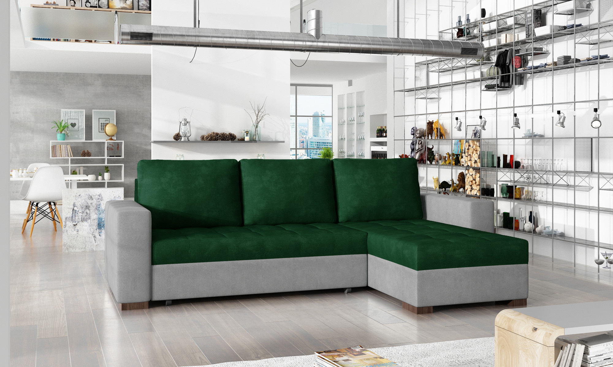 Rohová sedacia súprava Newark je vyrobená z kvalitných materiálov.Konštrukcia pohovky je vyrobená z kombinácie dreva a drevotriesky. Sedacia časť je vyrobená z kombinácie polyuretánovej peny T3040 + T2542 a pružín.Sedacia súprava je rozkladacia pomocou systému DL Automatic. Pohovka má priestranný úložný priestor na uloženie posteľnej bielizne.