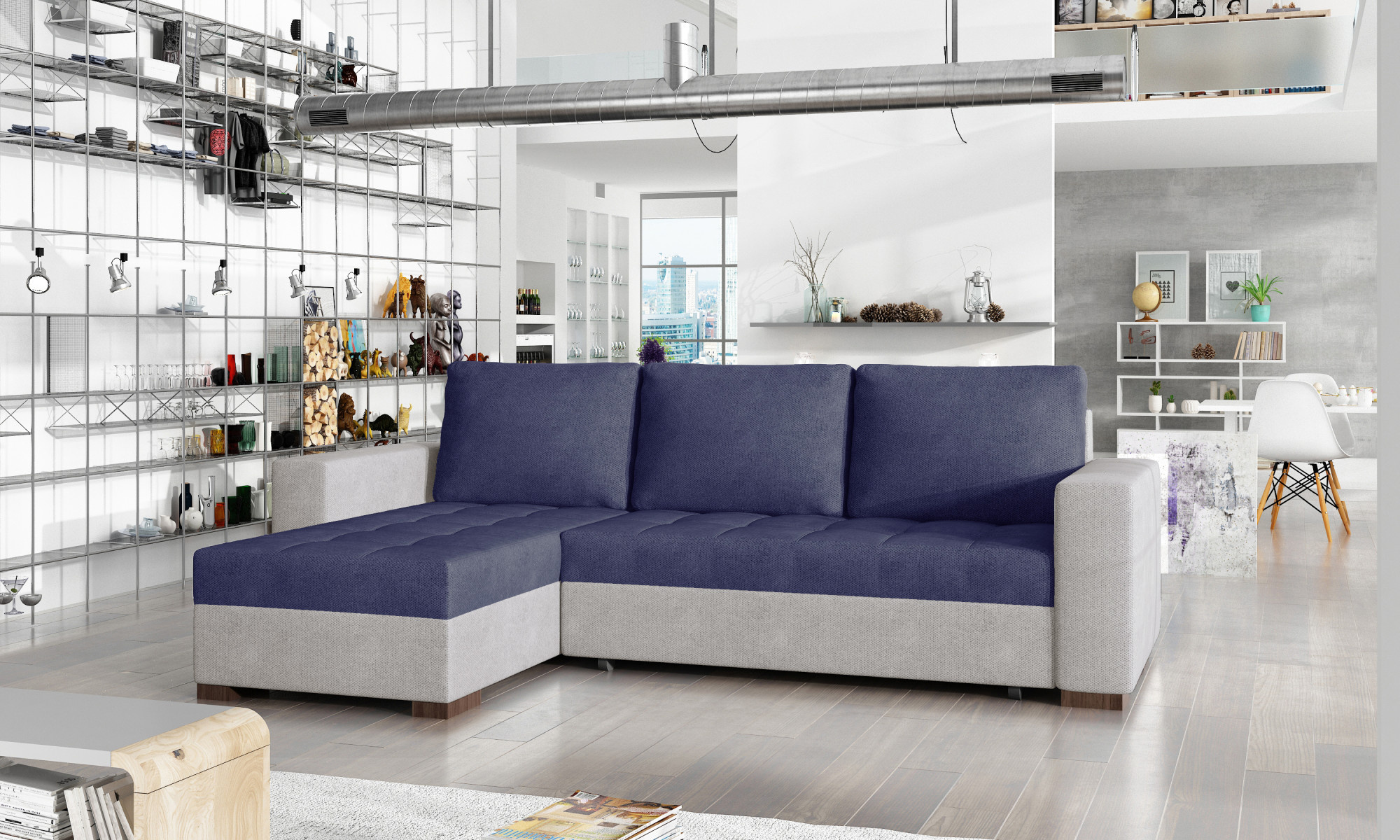Rohová sedacia súprava Newark je vyrobená z kvalitných materiálov.Konštrukcia pohovky je vyrobená z kombinácie dreva a drevotriesky. Sedacia časť je vyrobená z kombinácie polyuretánovej peny T3040 + T2542 a pružín.Sedacia súprava je rozkladacia pomocou systému DL Automatic. Pohovka má priestranný úložný priestor na uloženie posteľnej bielizne.