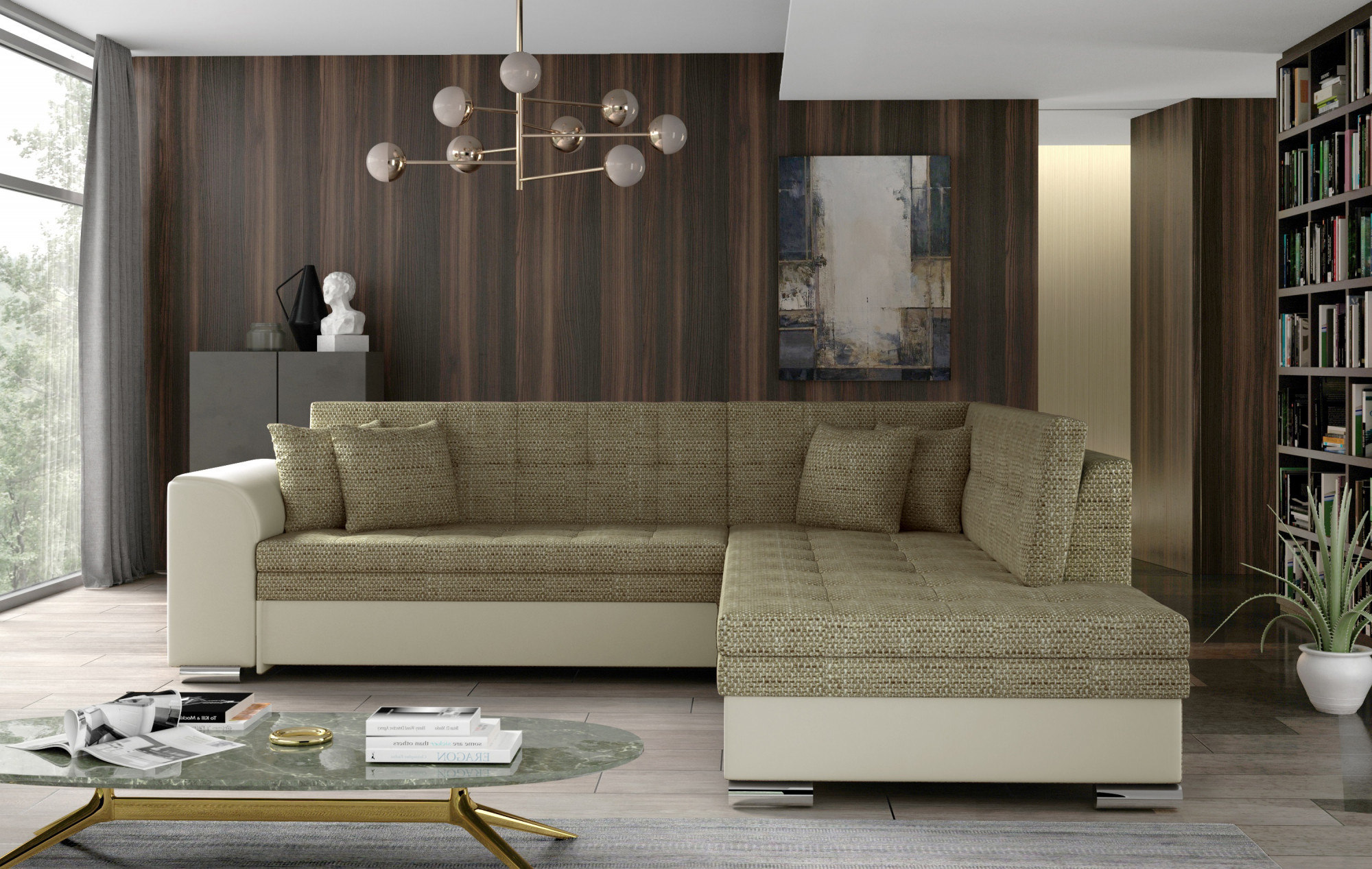 Rohová sedacia súprava Pieretta je vyrobená z kvalitných materiálov.Konštrukcia sedacej súpravy je vyrobená z dreva. Sedacia časť je vyrobená v kombinácii polyuretánovej peny T3030 a vlnitých pružín. Sedacia súprava je rozkladacia pomocou rozkladacieho mechanizmu typu Delfín.