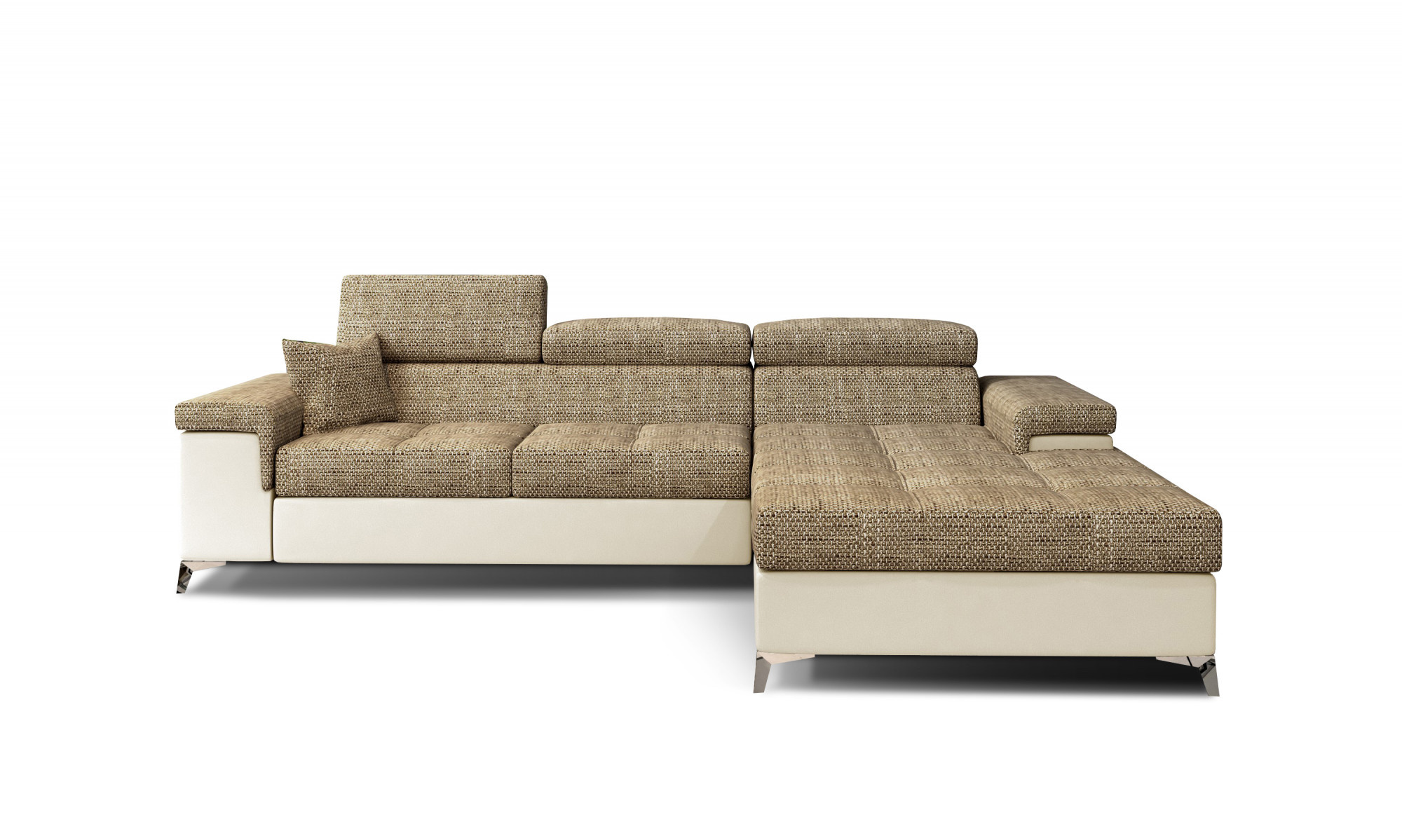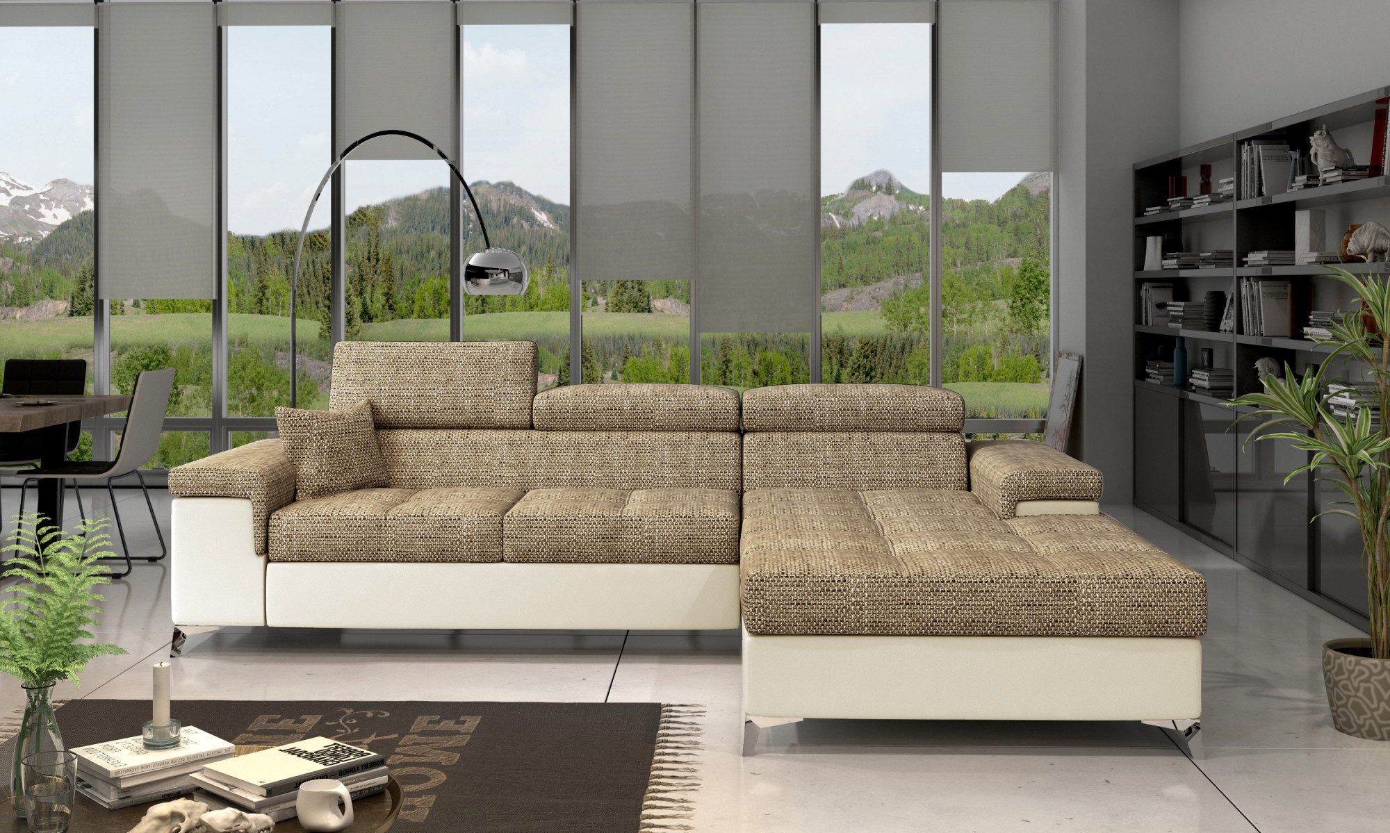 Rohová sedacia súprava Ricardo je vyrobená z kvalitných materiálov.Konštrukcia pohovky je vyrobená z kombinácie dreva a drevotriesky. Sedacia časť je vyrobená v kombinácii polyuretánovej peny T2542 s polyuretánovou penou T3030 a kosticami. Na podopretie pohovky sa používa polyuretánová pena T2542.Sedacia súprava je rozkladacia pomocou rozkladacieho typu Dolphin. Pohovka má priestranný úložný priestor na uloženie posteľnej bielizne.