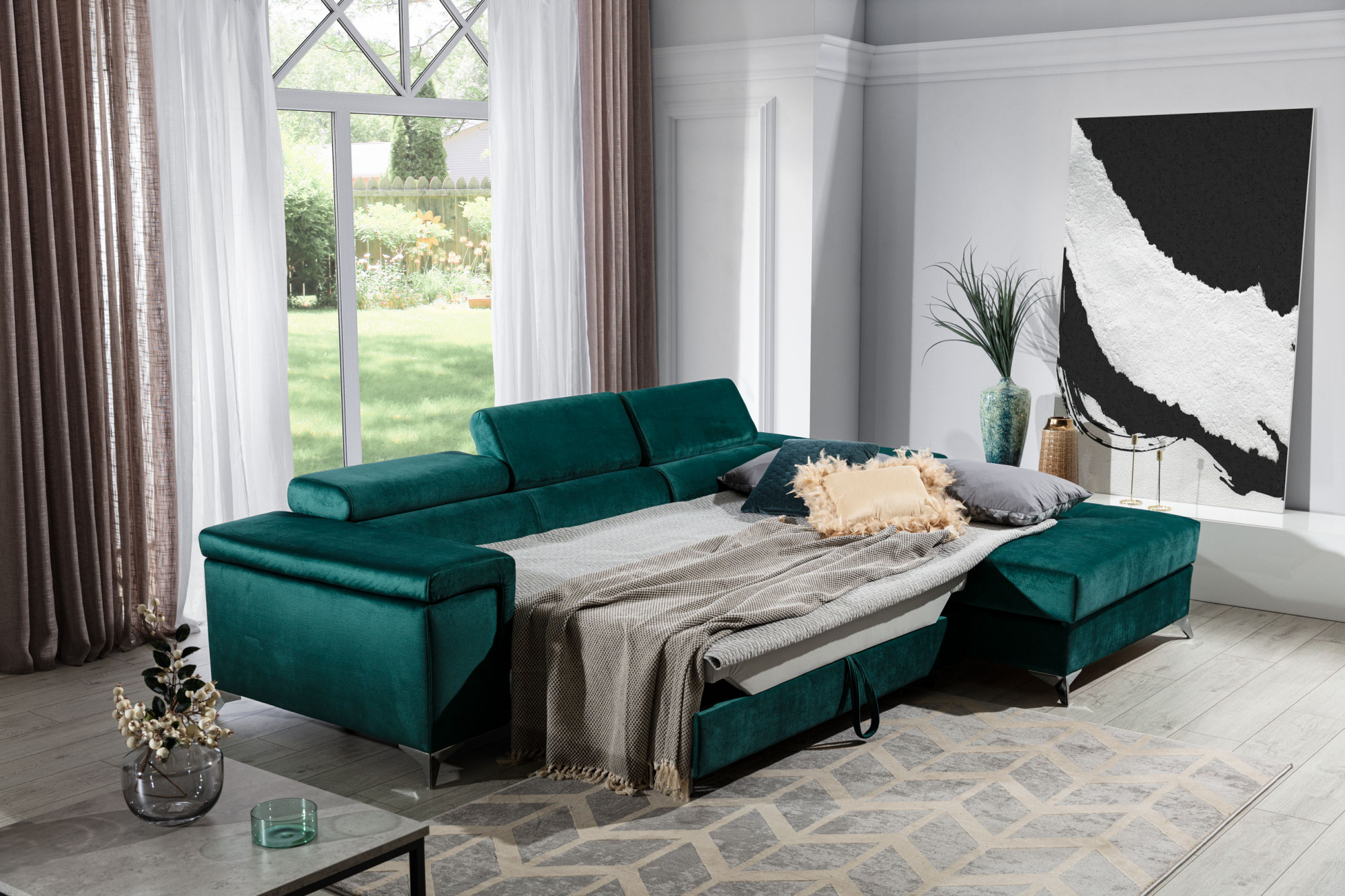 Rohová sedacia súprava Ricardo je vyrobená z kvalitných materiálov.Konštrukcia pohovky je vyrobená z kombinácie dreva a drevotriesky. Sedacia časť je vyrobená v kombinácii polyuretánovej peny T2542 s polyuretánovou penou T3030 a kosticami. Na podopretie pohovky sa používa polyuretánová pena T2542.Sedacia súprava je rozkladacia pomocou rozkladacieho typu Dolphin. Pohovka má priestranný úložný priestor na uloženie posteľnej bielizne.
