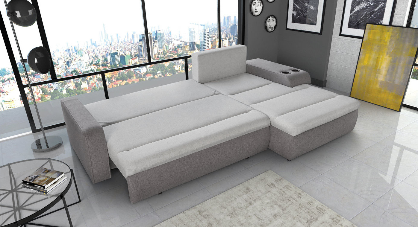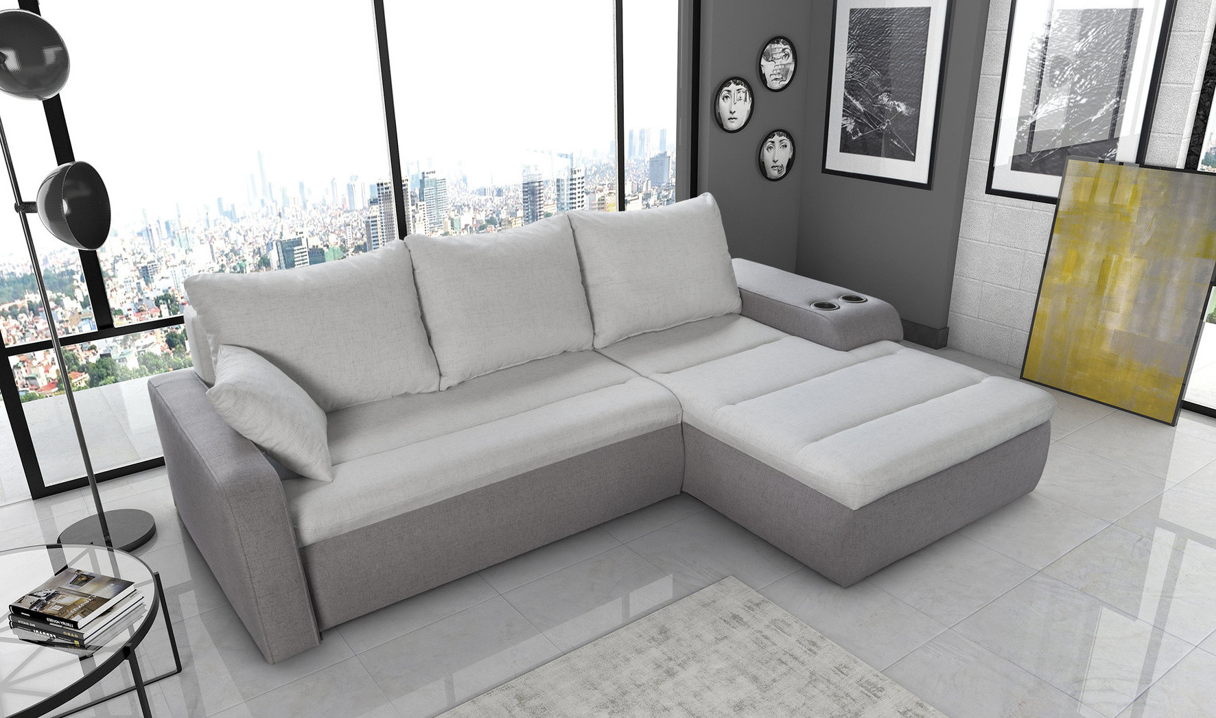 Rohová sedacia súprava Melo s držiakom na poháre, pravá