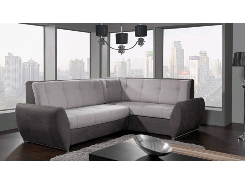 Moderná rozkladacia rohová pohovka s úložným priestorom a kovovými nohami. Môžete si vybrať ľavú alebo pravú stranu pohovky. Sedacia časť je vyrobená z vlnitého dreva v kombinácii s penou.