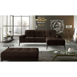 Rohová sedacia súprava Torrense je vyrobená z kvalitných materiálov.Konštrukcia pohovky je vyrobená z kombinácie dreva a drevotriesky. Sedacia časť je vyrobená z kombinácie HR peny a kostí.Pohovka nie je rozkladacia. S taburetkou môžete vytvoriť plochu na spanie s rozmermi 215 x 140 cm.