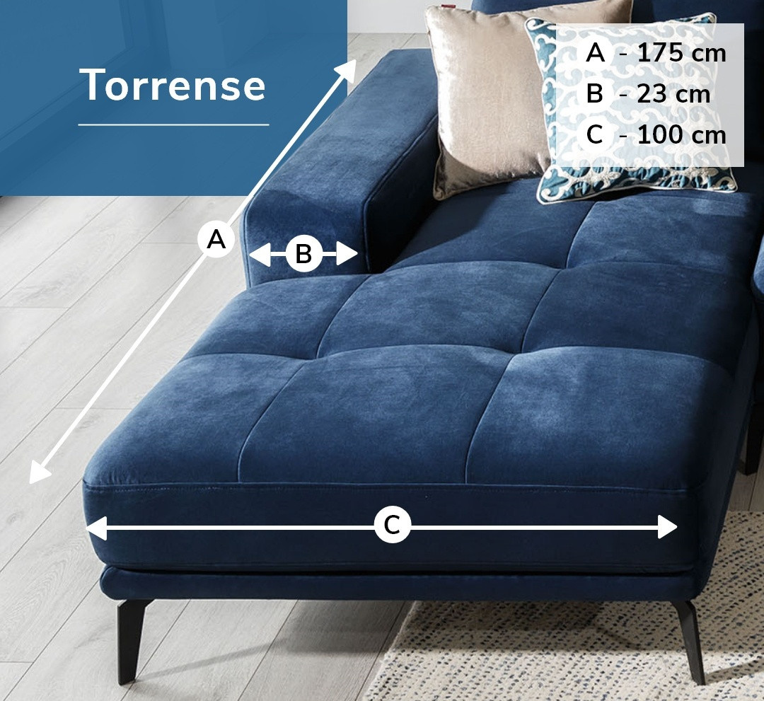Rohová sedacia súprava Torrense je vyrobená z kvalitných materiálov.Konštrukcia pohovky je vyrobená z kombinácie dreva a drevotriesky. Sedacia časť je vyrobená z kombinácie HR peny a kostí.Pohovka nie je rozkladacia. S taburetkou môžete vytvoriť plochu na spanie s rozmermi 215 x 140 cm.