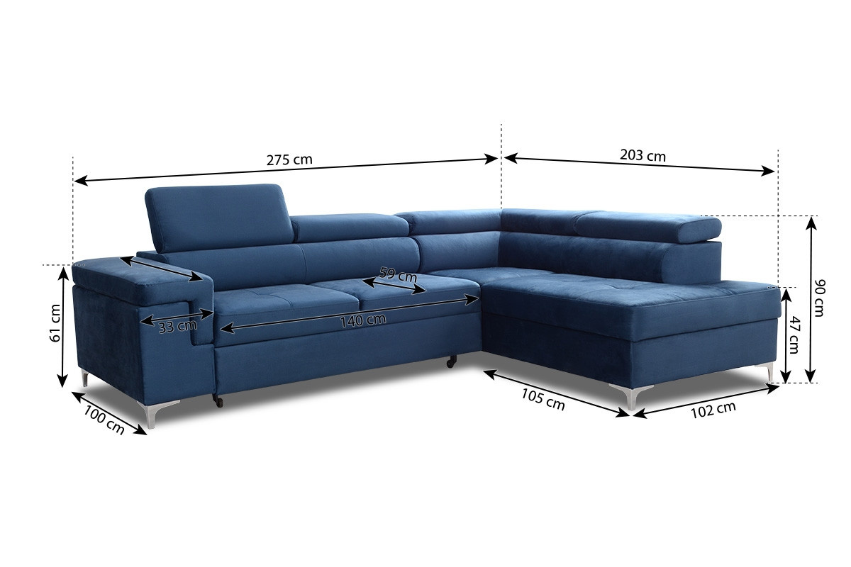 Rohová sedacia súprava s funkciou spania Trego , šírka: 275, výška: 90, hĺbka: 203, plocha na spanie: 125 x 193, montáž: vlastná. Rohová sedacia súprava Eridano s funkciou spania