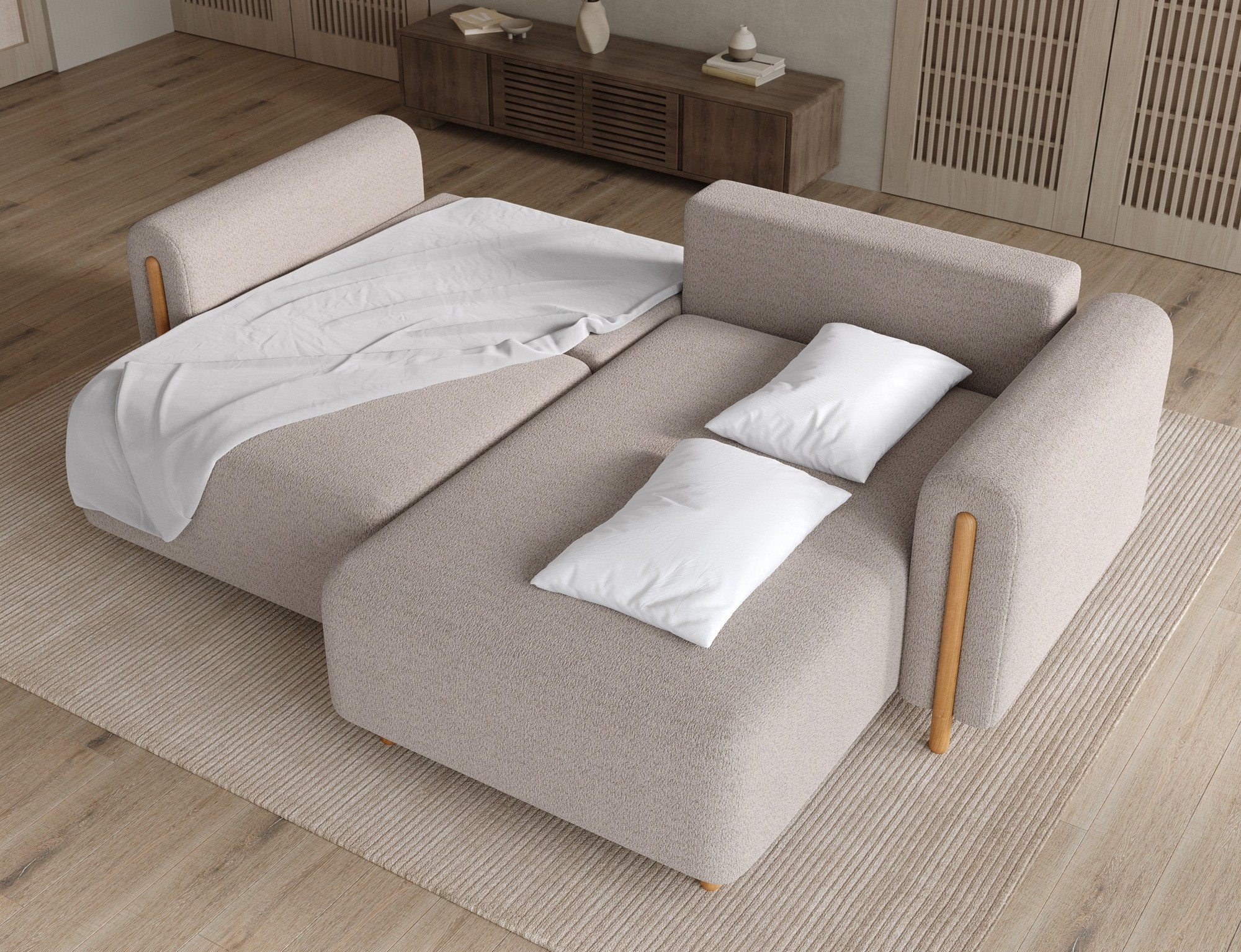 - Úložný priestor: Sedacia súprava je vybavená praktickým úložným priestorom, ktorý vám umožní ľahko uschovať deky, vankúše alebo iné predmety, ktoré chcete mať po ruke, ale zároveň ich mať úhľadne upratané.