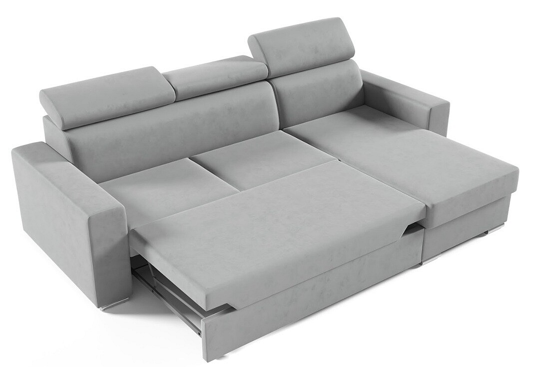 Rohová sedacia súprava ADELKA je vybavená rozkladacím systémom "Delfín", ktorý umožňuje jednoduché a rýchle premenenie na pohodlné lôžko o rozmeroch 205 x 124 cm. Tento systém je ideálny pre tých, ktorí potrebujú občasné miesto na spanie pre hostí, bez toho aby museli obetovať priestor alebo štýl.