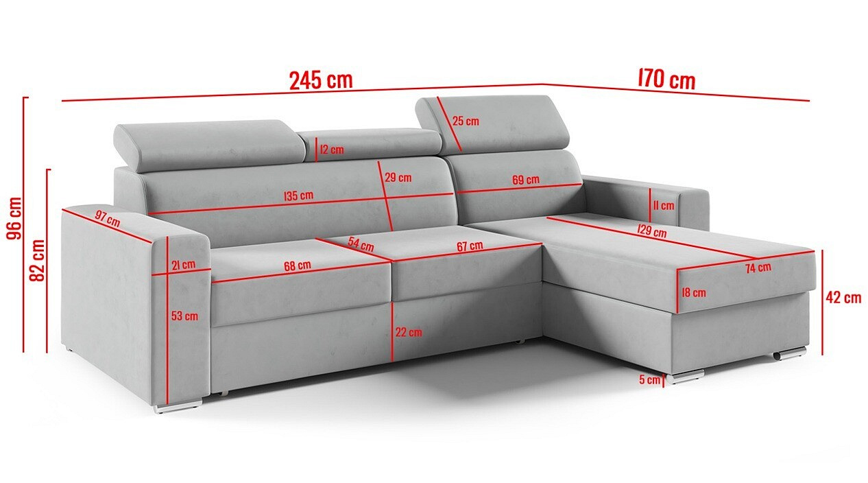Rohová sedacia súprava ADELKA je dostupná v pravej aj ľavej verzii, čo vám umožňuje prispôsobiť ju presne podľa dispozícií vášho interiéru. S rozmermi 245 x 170 cm a maximálnou nosnosťou 300 kg je ideálnou voľbou pre rodiny aj jednotlivcov, ktorí hľadajú priestranné a odolné riešenie.