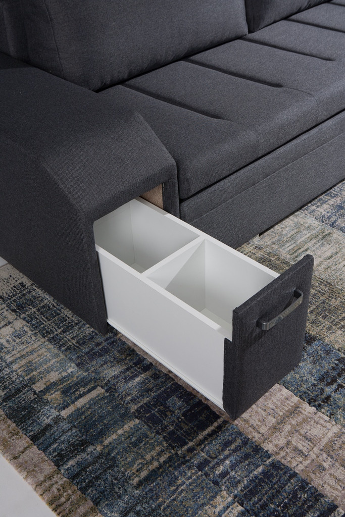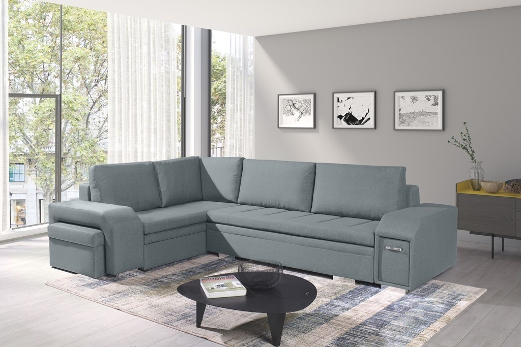 Sedacia súprava Alana v sebe spája 2 dôležité prvky, ktoré nesmú chýbať žiadnej sedacej súprave. Sú to pohodlie a praktickosť. Praktickou stránkou tejto sedacej súpravy je možnosť rozloženia pre príležitostné prespanie návštevy a nepostrádateľné úložné priestory. Úložný priestor s univerzálnym využitím nájdete v podrúčke, ďalej v taburete, ktorý je možné zasunúť do druhej podrúčky a samozrejmosťou je aj úložný priestor v sedacej súprave. Sú dva a využijete ich napr. na posteľnú bielizeň. Sedacia súprava je celočalúnená, takže je vhodná aj na umiestnenie do priestoru. Výplň sedákov tvorí kombinácia pružín s kvalitnou PUR penou. Táto kombinácia spolu s veľkými opornými vankúšmi, zaisťuje pohodlie. Sedaciu súpravu ponúkame v ľavom aj pravom prevedení v niekoľkých trendy farbách. Zobrazené doplnky a dekorácie nie sú v cene. Vzorka látky, v ktorej bude sedacia súprava dodaná, je zobrazená v doplnkových fotografiách.