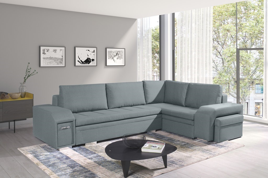 Sedacia súprava Alana v sebe spája 2 dôležité prvky, ktoré nesmú chýbať žiadnej sedacej súprave. Sú to pohodlie a praktickosť. Praktickou stránkou tejto sedacej súpravy je možnosť rozloženia pre príležitostné prespanie návštevy a nepostrádateľné úložné priestory. Úložný priestor s univerzálnym využitím nájdete v podrúčke, ďalej v taburete, ktorý je možné zasunúť do druhej podrúčky a samozrejmosťou je aj úložný priestor v sedacej súprave. Sú dva a využijete ich napr. na posteľnú bielizeň. Sedacia súprava je celočalúnená, takže je vhodná aj na umiestnenie do priestoru. Výplň sedákov tvorí kombinácia pružín s kvalitnou PUR penou. Táto kombinácia spolu s veľkými opornými vankúšmi, zaisťuje pohodlie. Sedaciu súpravu ponúkame v ľavom aj pravom prevedení v niekoľkých trendy farbách. Zobrazené doplnky a dekorácie nie sú v cene. Vzorka látky, v ktorej bude sedacia súprava dodaná, je zobrazená v doplnkových fotografiách.