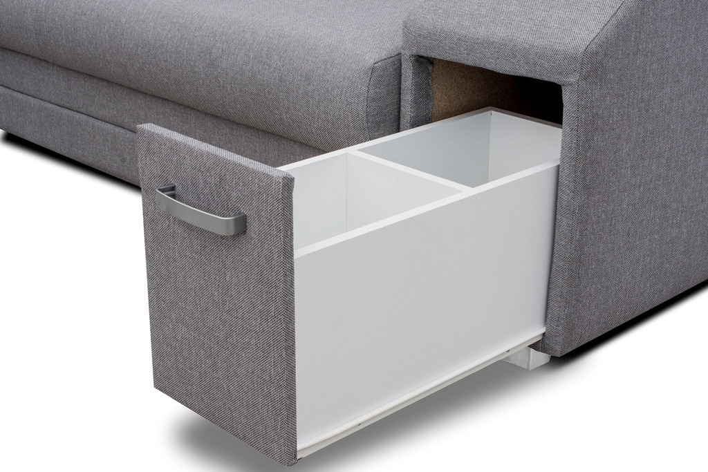 ALVARES je elegantná rohová pohovka v tvare písmena L s bočnicami, ktorá upúta pozornosť chrómovými nožičkami a úchytkami v kombinácii s praktickým úložným priestorom na drobné doplnky. Stabilná drevená rámová konštrukcia je k dispozícii v pravostrannej alebo ľavostrannej verzii, takže každý zákazník si môže prezentovaný model prispôsobiť svojim individuálnym preferenciám a priestorovým možnostiam. Rozkladacia rohová pohovka je vybavená funkciou automatického rozkladu, ktorá vám umožní efektívne nahliadnuť do dvoch úložných priestorov na posteľnú bielizeň a rozložiť rohovú pohovku. Zaujímavým prvkom je zabudovaný priestor pre taburet v rohu, ktorý je súčasťou súpravy, ako aj ozdobné vankúše umiestnené na mierne tvarovanom operadle. Štýlová rohová pohovka ALVARES s funkciou spania je vyplnená vlnitými pružinami a čalúnnickou penou T-30, ktoré zabezpečujú dostatočnú odolnosť a pružnosť sedáku alebo operadla. Predstavená rohová pohovka je celá čalúnená pôsobivou látkou, ktorá je k dispozícii v širokej škále farieb.