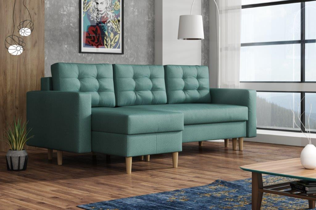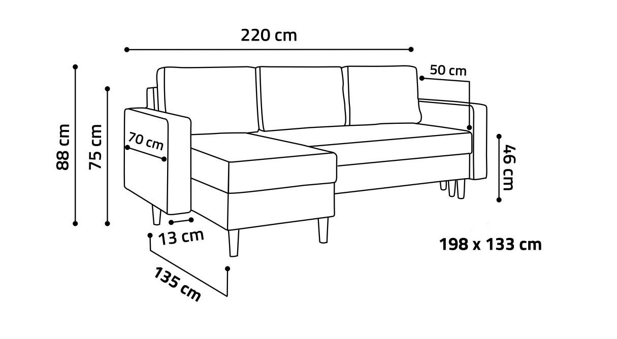 Sedacia súprava Anabel je krásnym dizajnovým RETRO kúskom, ktorý výborne zapadne do moderného aj klasického interiéru. Retro dizajn podčiarkujú drevené nohy a vtahy na oporných vankúšoch. Jej veľkou prednosťou je pohodlie, praktickosť a univerzálne použitie. Tzn. že si ju môžete podľa potreby zostaviť ako ľavú alebo pravú, čo je výhoda pri zariaďovaní obývacej izby. Nemusíte premýšľať, do ktorého rohu postavíte sedaciu súpravu, jednoducho ju podľa potreby prispôsobíte. Sedacia súprava je rozkladacia a môže tak slúžiť na občasné prespanie Vašej návštevy. Samozrejmosťou je aj praktický úložný priestor, ktorý je v oboch častiach sedačky a môžete ho využiť napr. na posteľnú bielizeň. Sedacia súprava je potiahnutá látkou a ponúkame ju v niekoľkých obľúbených farbách. Výplň sedákov tvorí kombinácia pružín s kvalitnou PUR penou, čo zaisťuje veľmi pohodlné sedenie. Sedacia súprava je vhodná aj do menších izieb. Zobrazené doplnky a dekorácie nie sú v cene. Zobrazenie farieb produktu na fotografii sa môže nepatrne líšiť od skutočnosti.