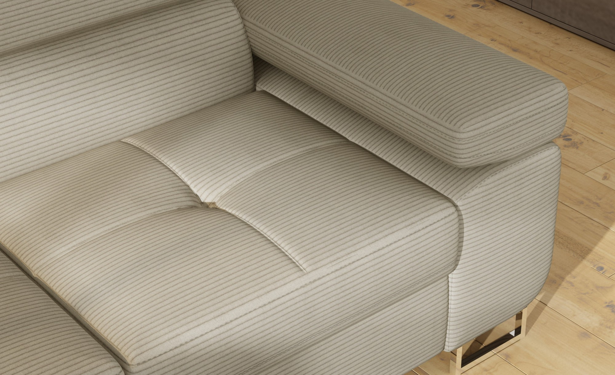 Anton sa pýši vysokými, nastaviteľnými opierkami hlavy, ktoré prispievajú k maximálnemu komfortu. Široké, 31 centimetrov široké opierky rúk a 9 cm vysoké kovové nohy dodávajú pohovke moderný a sofistikovaný vzhľad. Tieto detaily nielen zvyšujú estetickú hodnotu, ale tiež zabezpečujú stabilitu a dlhú životnosť nábytku.