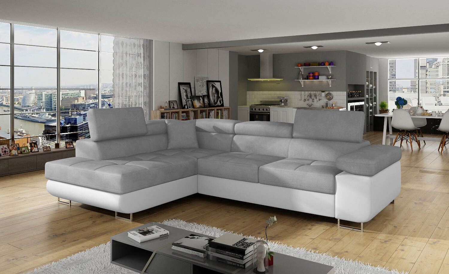 Anton je multifunkčná a priestranná rohová rozkladacia pohovka vyrobená v modernom štýle. Je synonymom vysokej kvality a maximálneho komfortu, vďaka širokému sedadlu s hĺbkou 60 cm a extrémne elastickej pene T30. Anton, s rozmermi 275 x 202 x 90 cm a veľkou spací plochou 125 x 193 cm, znamená mať dobrý nočný spánok. Nábytok má tiež veľký úložný priestor na posteľnú bielizeň. Maximálny efekt vnímaného pohodlia je ovplyvnený okrem iného vysokými, nastaviteľnými opierkami hlavy, 28 centimetrov širokými opierkami na ruky, ako aj 9 cm vysokými kovovými nohami. Ak máte záujem o to, čo ďalšie Anton ponúka - odporúčame vám vybrať si našu rohovú rozkladaciu pohovku.