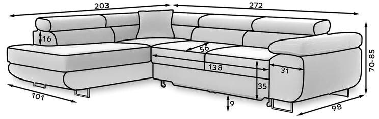 Anton je synonymom pre vysokú kvalitu a maximálne pohodlie. Je vybavená širokým sedadlom s hĺbkou 56 cm, ktoré je vyplnené extrémne elastickou penou T30. Táto kombinácia zaisťuje, že sa budete cítiť pohodlne, či už sedíte alebo ležíte. Pohovka má rozmery 272 x 203 x 85 cm, čo poskytuje dostatok priestoru na relaxáciu.