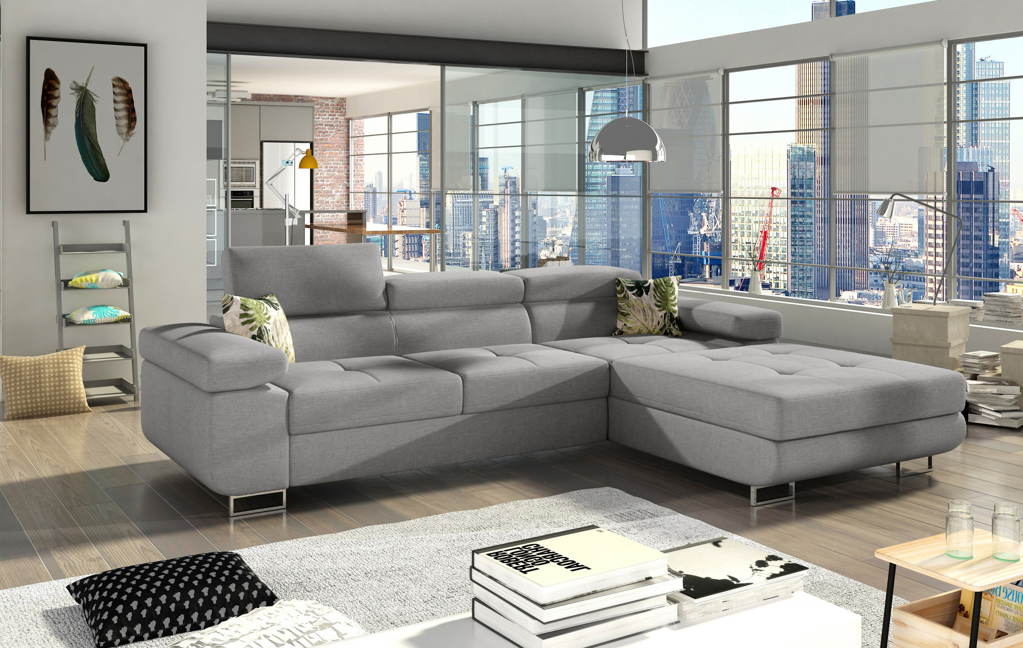 Armando je štýlová, funkčná a predovšetkým elegantná rohová rozkladacia pohovka pre náročných znalcov pohodlia. Vysoký komfort odpočinku je zvýšený širokými opierkami rúk, dobre tvarovaným operadlom a nastaviteľnými, vysokými opierkami hlavy. Sedák priestrannej rohovej jednotky s rozmermi 280 x 205 x 90 cm je vyrobený z peny T30, ktorá zaisťuje maximálne pohodlie a pružnosť. Rohová sedacia súprava v tvare L je vybavená funkciou spania s plochou 125 x 198 cm. Okrem toho má tiež veľký úložný priestor na posteľnú bielizeň. Vďaka jemným detailom prešívania, elegantným stehom a vysokým chrómovým nohám je rohová jednotka udržiavaná v modernom štýle dokončenia. Armando je k dispozícii v mnohých farbách. Stojí za to mať taký kus nábytku vo svojom domove.