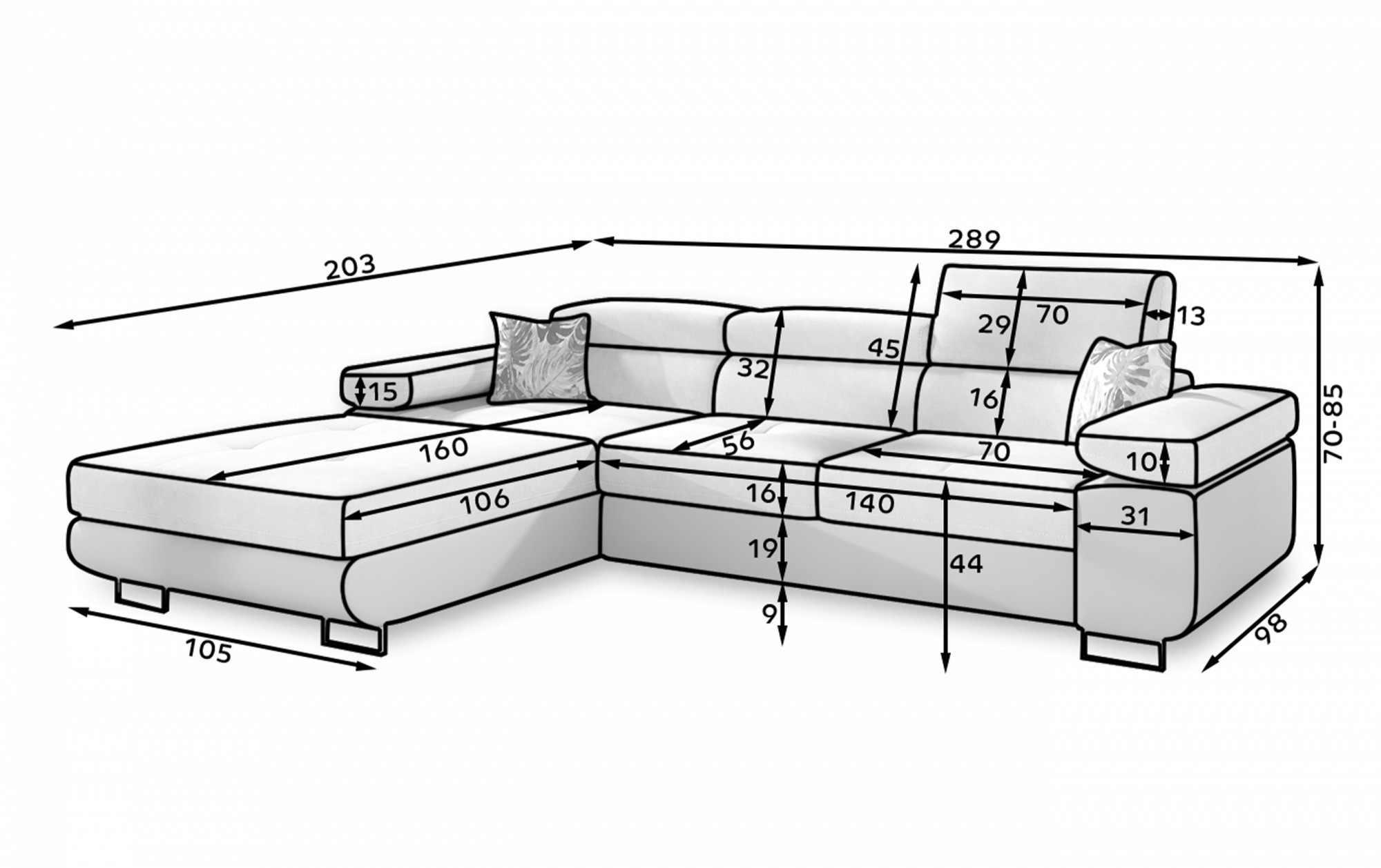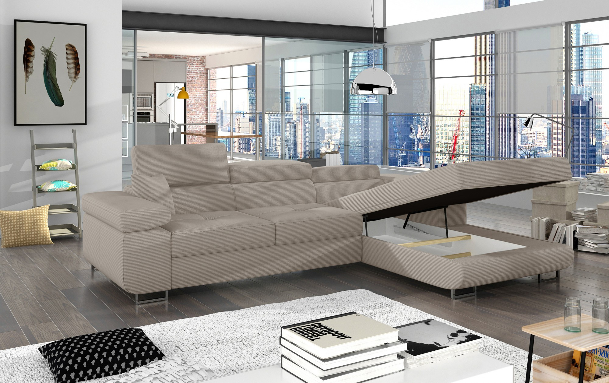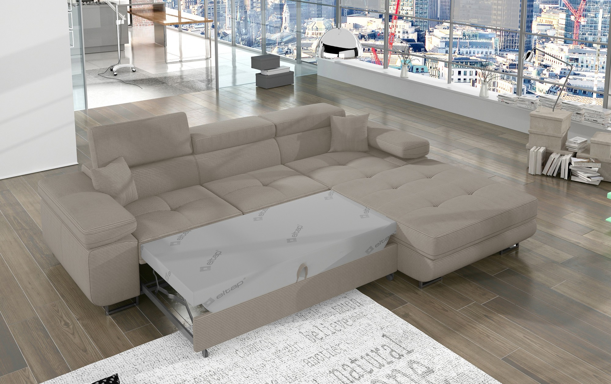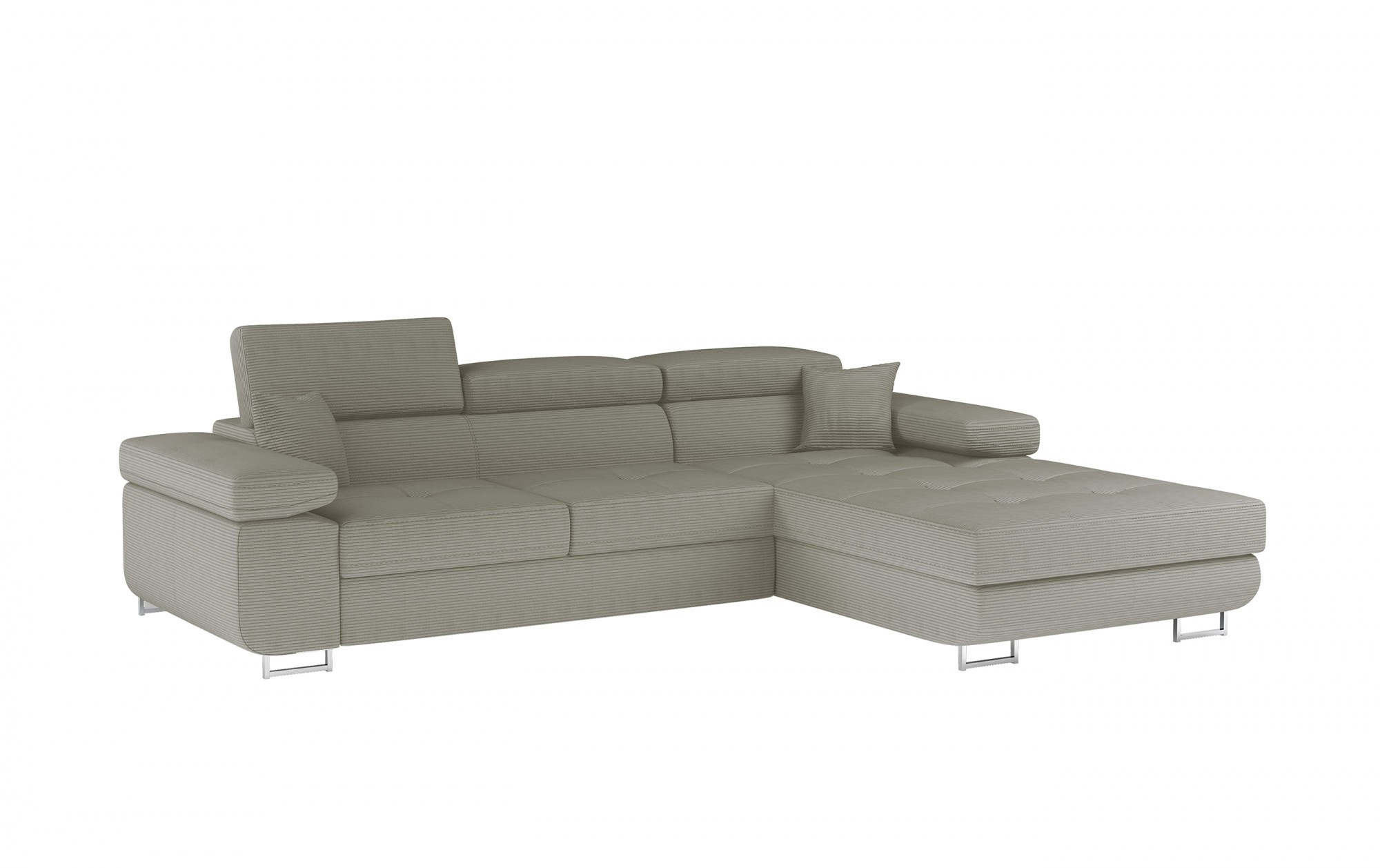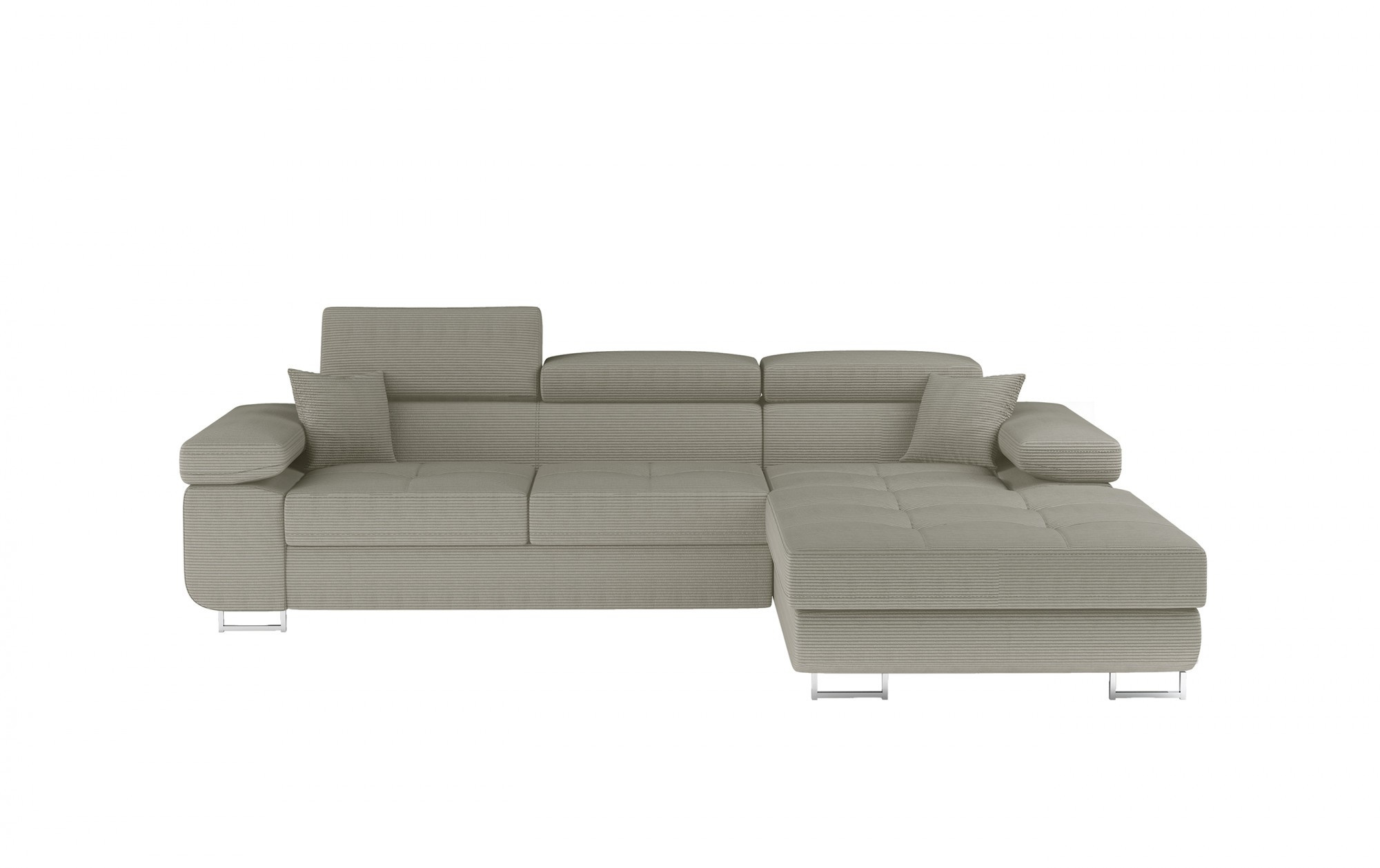 Armando je štýlová, funkčná a predovšetkým elegantná rohová rozkladacia pohovka pre náročných znalcov pohodlia. Vysoký komfort odpočinku je zvýšený širokými opierkami rúk, dobre tvarovaným operadlom a nastaviteľnými, vysokými opierkami hlavy. Sedák priestrannej rohovej jednotky s rozmermi 280 x 205 x 90 cm je vyrobený z peny T30, ktorá zaisťuje maximálne pohodlie a pružnosť. Rohová sedacia súprava v tvare L je vybavená funkciou spania s plochou 125 x 198 cm. Okrem toho má tiež veľký úložný priestor na posteľnú bielizeň. Vďaka jemným detailom prešívania, elegantným stehom a vysokým chrómovým nohám je rohová jednotka udržiavaná v modernom štýle dokončenia. Armando je k dispozícii v mnohých farbách. Stojí za to mať taký kus nábytku vo svojom domove.