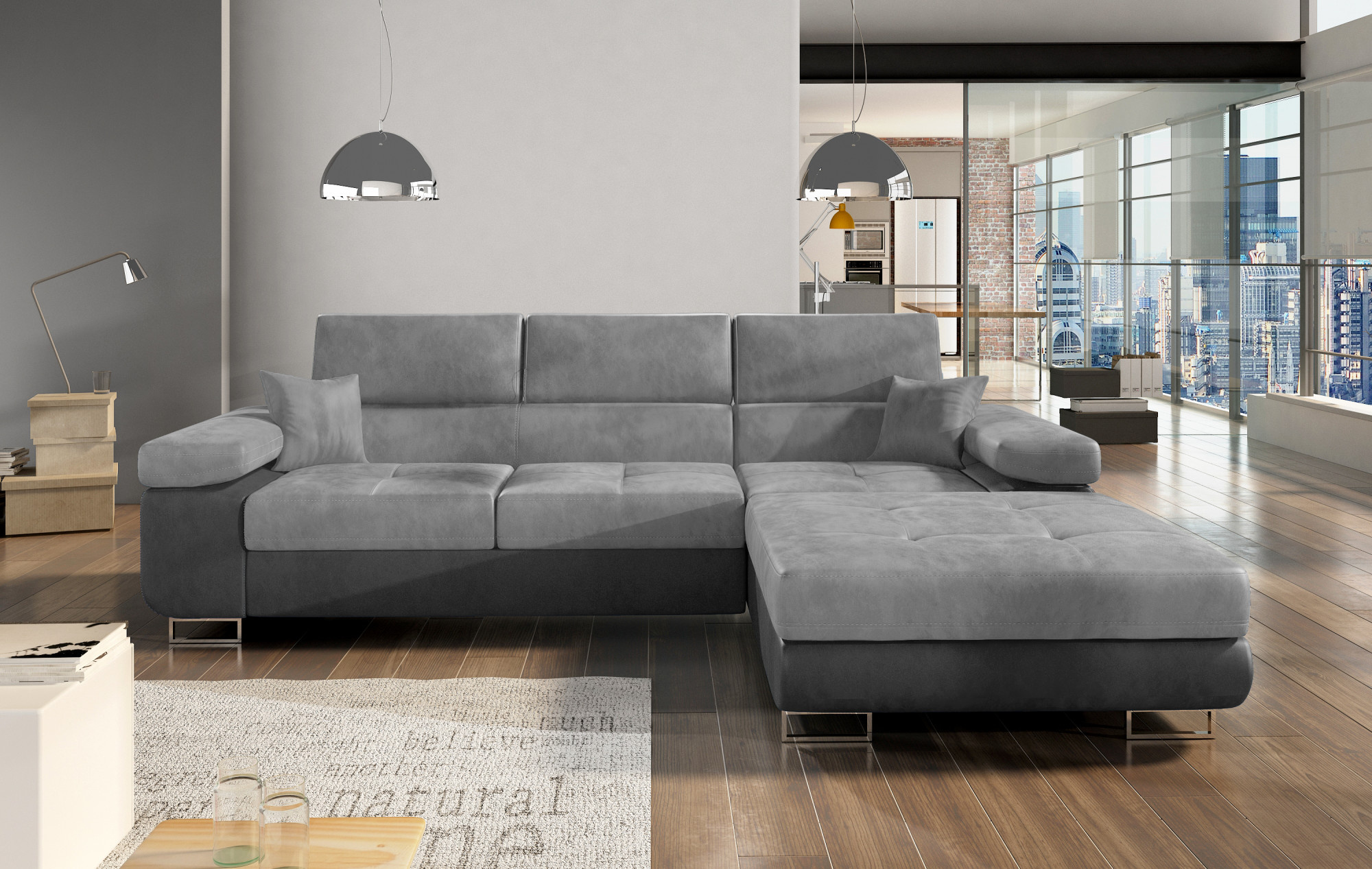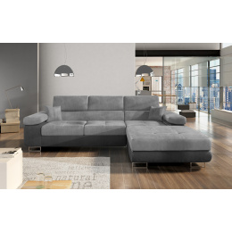 Armando je štýlová, funkčná a predovšetkým elegantná rohová rozkladacia pohovka pre náročných znalcov pohodlia. Vysoký komfort odpočinku je zvýšený širokými opierkami rúk, dobre tvarovaným operadlom a nastaviteľnými, vysokými opierkami hlavy. Sedák priestrannej rohovej jednotky s rozmermi 280 x 205 x 90 cm je vyrobený z peny T30, ktorá zaisťuje maximálne pohodlie a pružnosť. Rohová sedacia súprava v tvare L je vybavená funkciou spania s plochou 125 x 198 cm. Okrem toho má tiež veľký úložný priestor na posteľnú bielizeň. Vďaka jemným detailom prešívania, elegantným stehom a vysokým chrómovým nohám je rohová jednotka udržiavaná v modernom štýle dokončenia. Armando je k dispozícii v mnohých farbách. Stojí za to mať taký kus nábytku vo svojom domove.