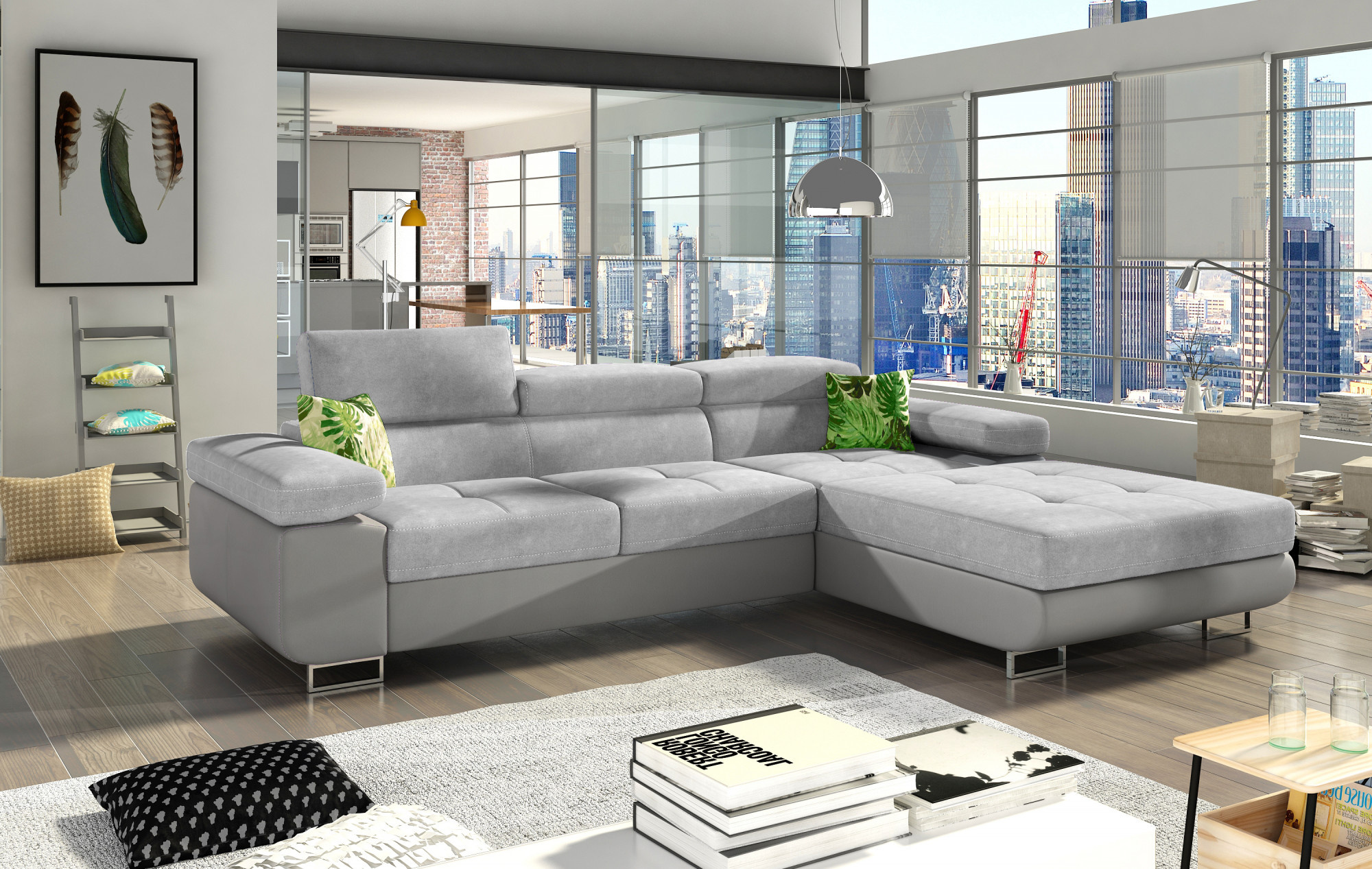 Armando je štýlová, funkčná a predovšetkým elegantná rohová rozkladacia pohovka pre náročných znalcov pohodlia. Vysoký komfort odpočinku je zvýšený širokými opierkami rúk, dobre tvarovaným operadlom a nastaviteľnými, vysokými opierkami hlavy. Sedák priestrannej rohovej jednotky s rozmermi 280 x 205 x 90 cm je vyrobený z peny T30, ktorá zaisťuje maximálne pohodlie a pružnosť. Rohová sedacia súprava v tvare L je vybavená funkciou spania s plochou 125 x 198 cm. Okrem toho má tiež veľký úložný priestor na posteľnú bielizeň. Vďaka jemným detailom prešívania, elegantným stehom a vysokým chrómovým nohám je rohová jednotka udržiavaná v modernom štýle dokončenia. Armando je k dispozícii v mnohých farbách. Stojí za to mať taký kus nábytku vo svojom domove.