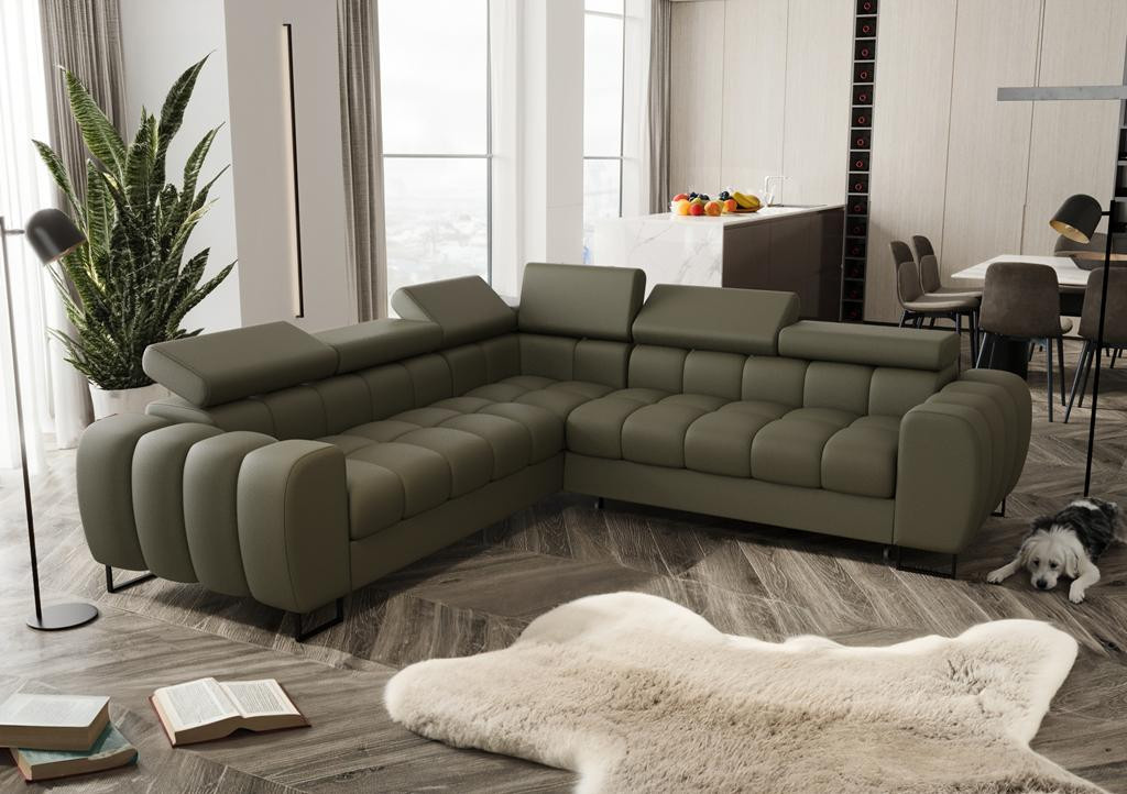 Rohová sedacia súprava ASPEN MAX 260x260 cm prírodná koža - pravá, Olivová koža