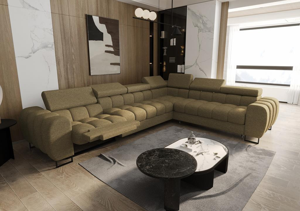 Rohová sedacia súprava ASPEN MAX, relax priemer 30x260 cm - tehlová, pravá