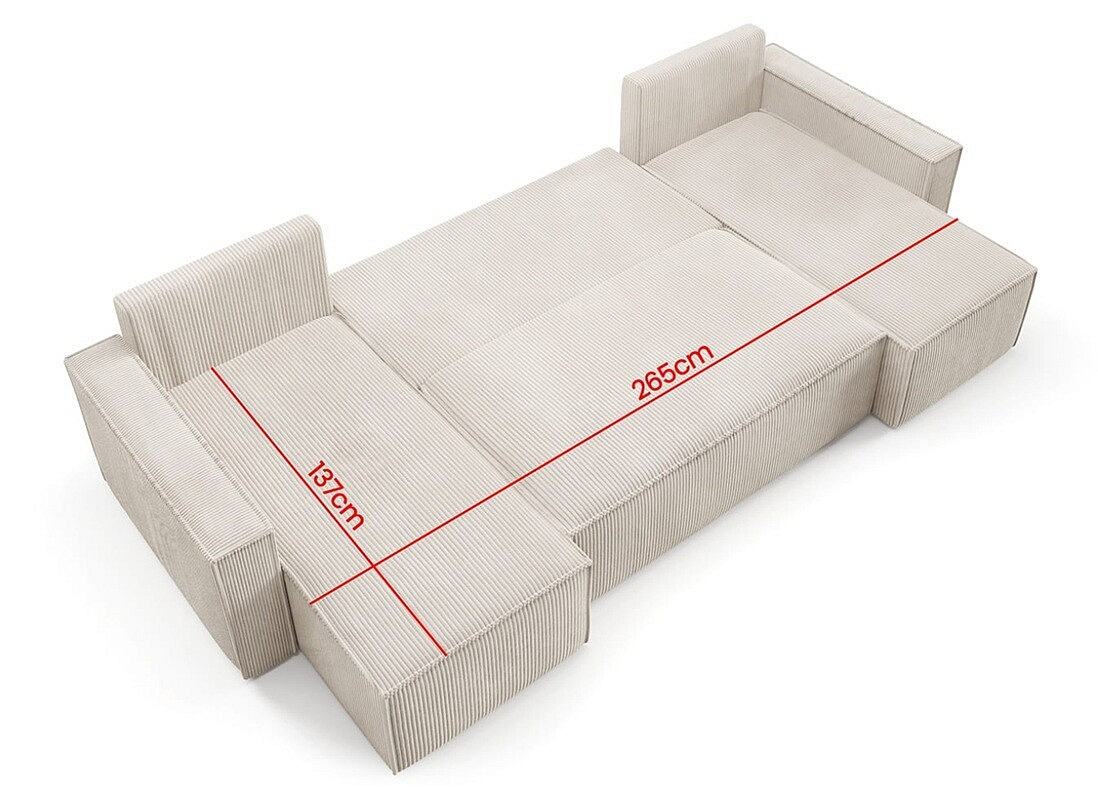 Jednou z najväčších výhod tejto sedacej súpravy je jej rozkladacia funkcia. Ľahko ju premeníte na pohodlné lôžko s plochou na spanie o rozmeroch 265x137 cm. To je ideálne riešenie pre hostí, ktorí u vás zostanú cez noc, alebo pre chvíle, keď si chcete dopriať oddych počas dňa.