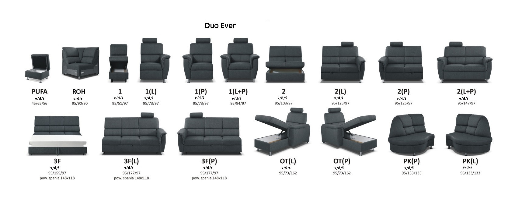 Jeho moderný a elegantný dizajn sa ľahko hodí do rôznych typov interiérov.Objednajte si Rohovú sedaciu súpravu DUO EVER ešte dnes a vychutnajte si pohodlie a praktickosť, ktoré prináša do vášho domova.