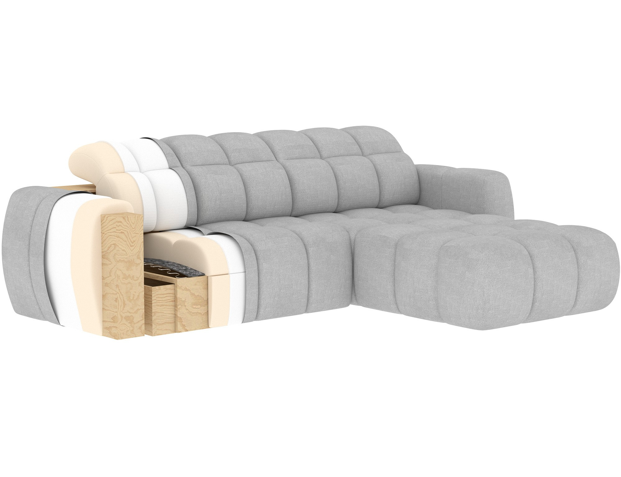 Sedacia časť je vyrobená z pružiny falista typu B, polyuretánovej peny HR3030 a rúna, čo zaisťuje optimálnu podporu a pohodlie. Oporná časť je tvorená profilovanou polyuretánovou penou T2316 a rúnom, čo prispieva k celkovému komfortu a dlhej životnosti súpravy.