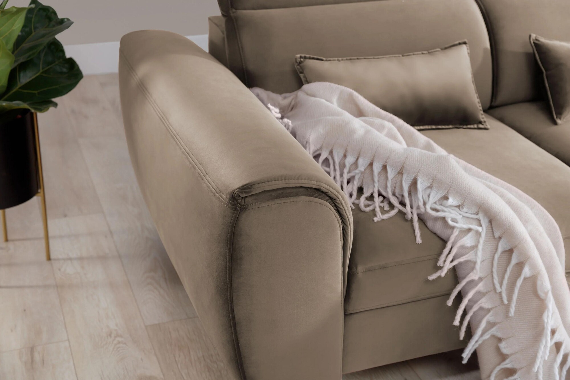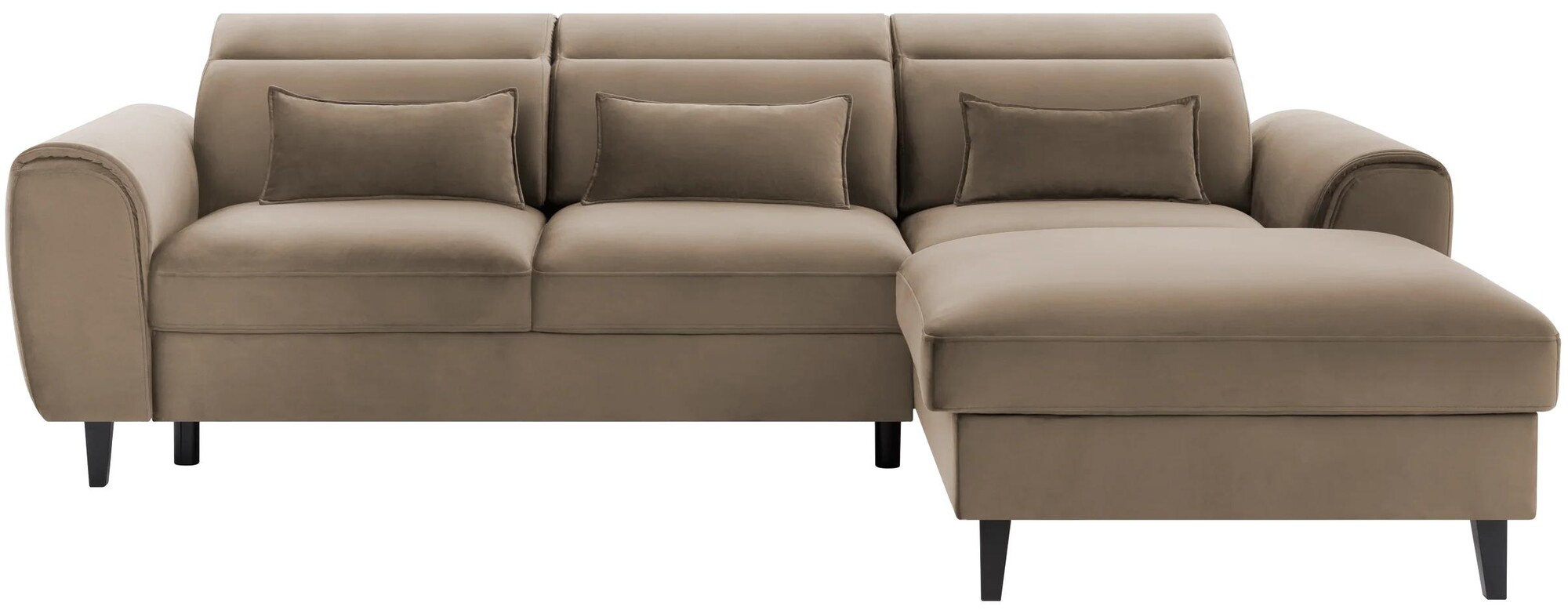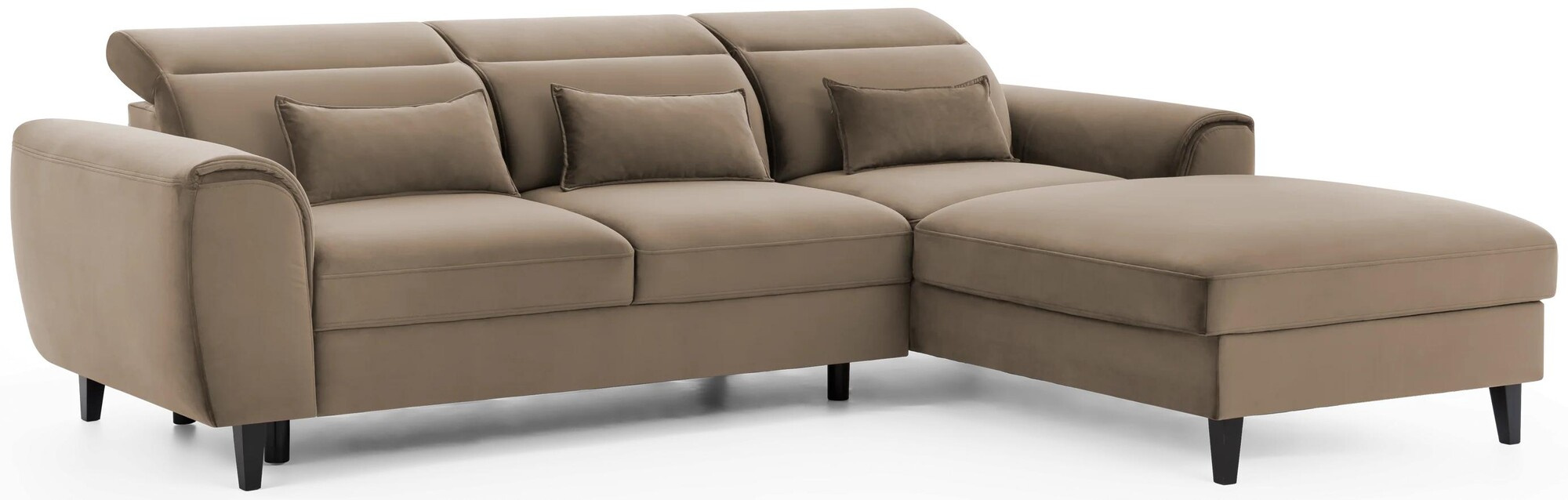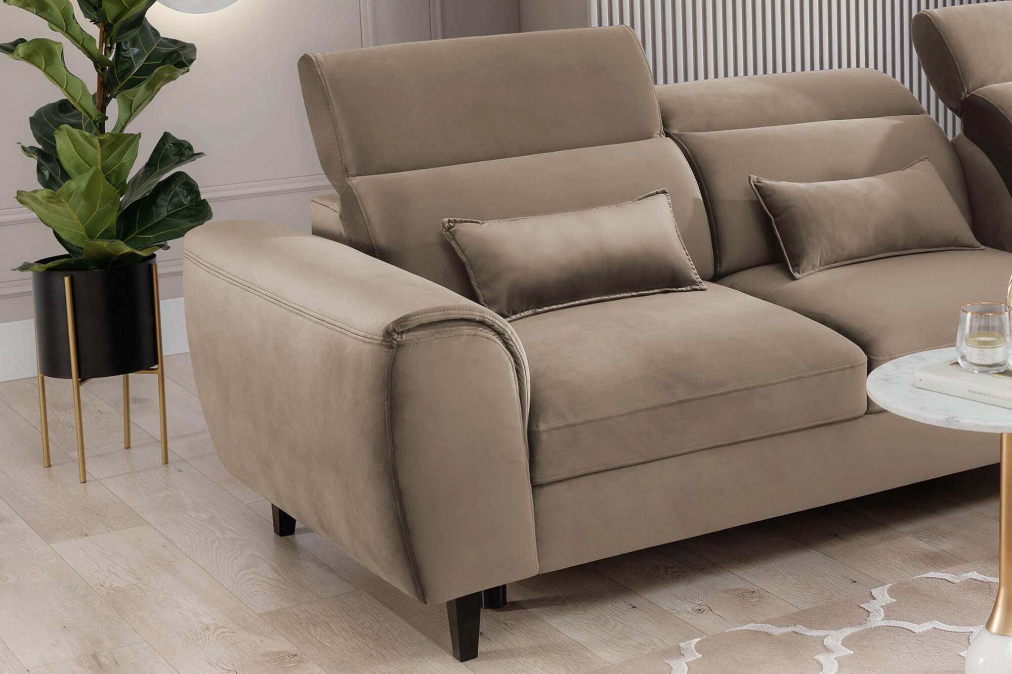 Opierky hlavy si môžete ľahko nastaviť podľa svojich preferencií a efektívne podoprieť krk. Môžete si tak v pokoji čítať svoju obľúbenú knihu alebo sledovať epizódu (alebo aj niekoľko!) a ani niekoľko hodín strávených v jednej polohe nebude mať negatívny dopad na vaše zdravie.Ďalšou výhodou rohovej pohovky sú tri štandardné dekoračné vankúše. Nielenže zvyšujú pohodlie pohovky, ale slúžia aj ako estetická ozdoba, ktorá umocňuje jej vizuálnu atraktivitu. Môžete ich tiež umiestniť na kreslá a vytvoriť tak harmonicky ucelený dekor.