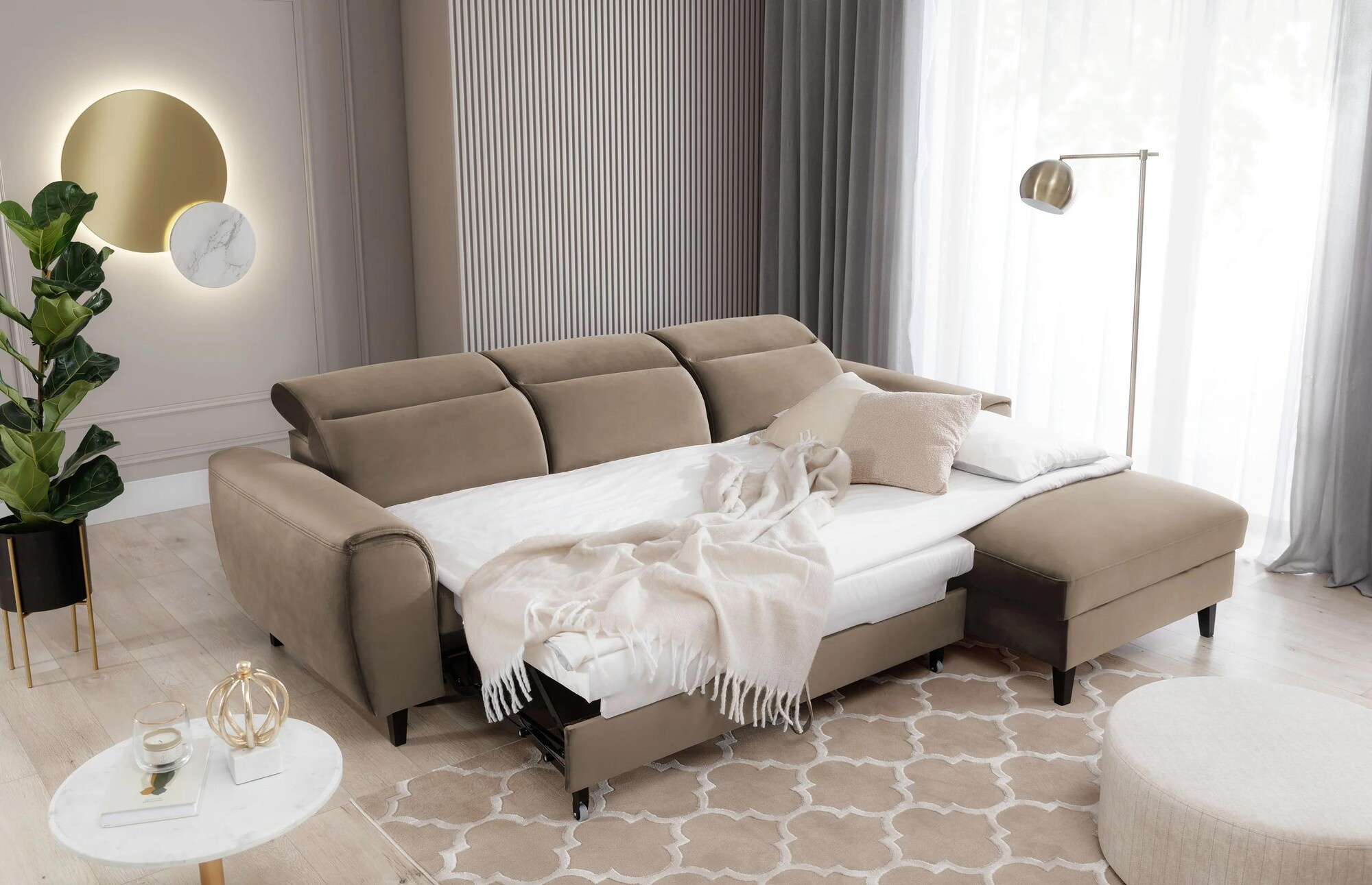 Rohová pohovka Foble s funkciou spania a úložným priestorom