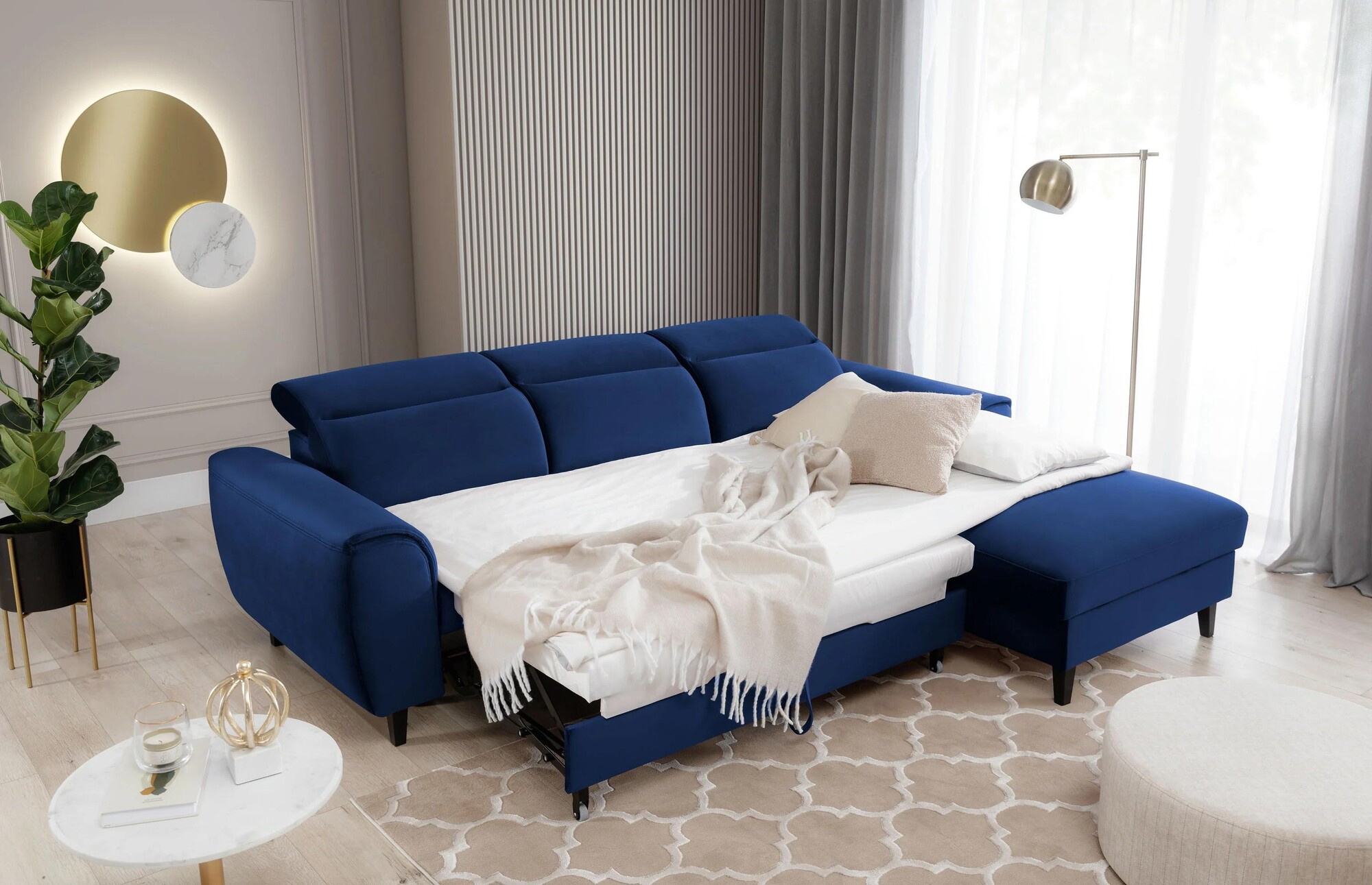 Rohová pohovka Foble s funkciou spania a úložným priestorom
