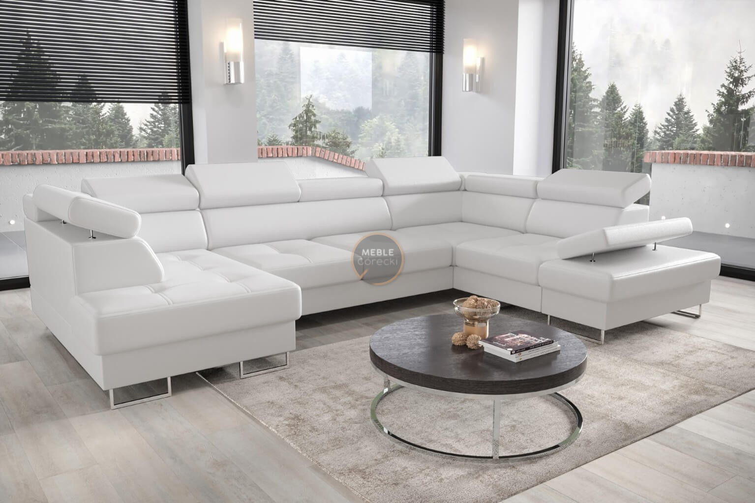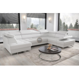 Rohová sedacia súprava GALAXY MAX II s funkciou spania 210x350x165 - biela eko koža, pravá