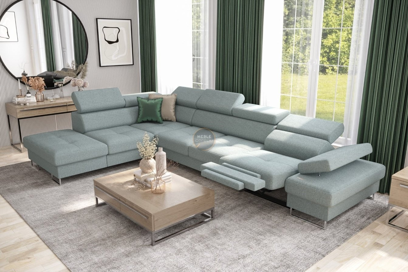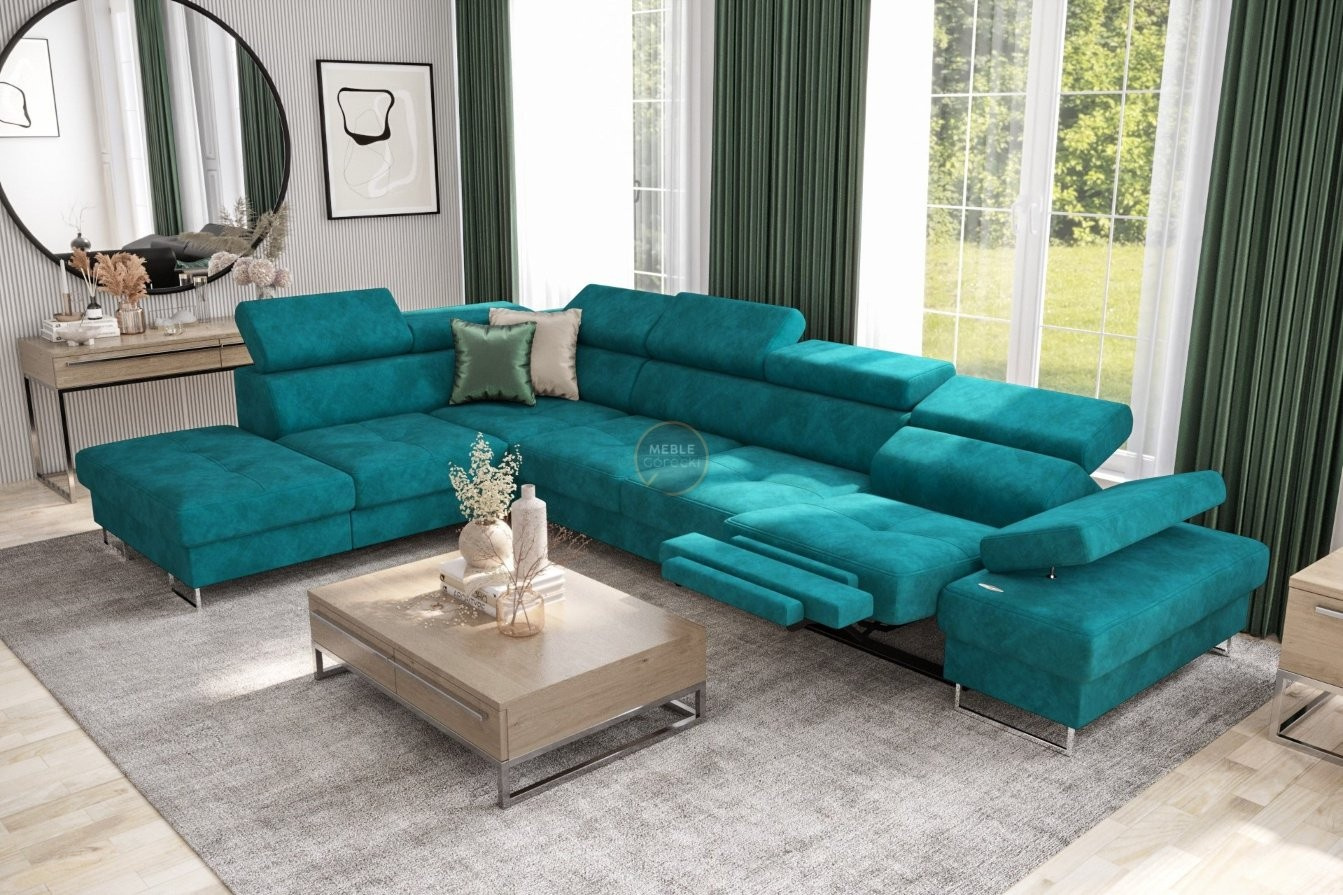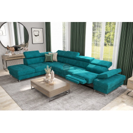 Rohová sedacia súprava GALAXY, relax s funkciou spania 225X350 cm - tyrkysová, ľavá
